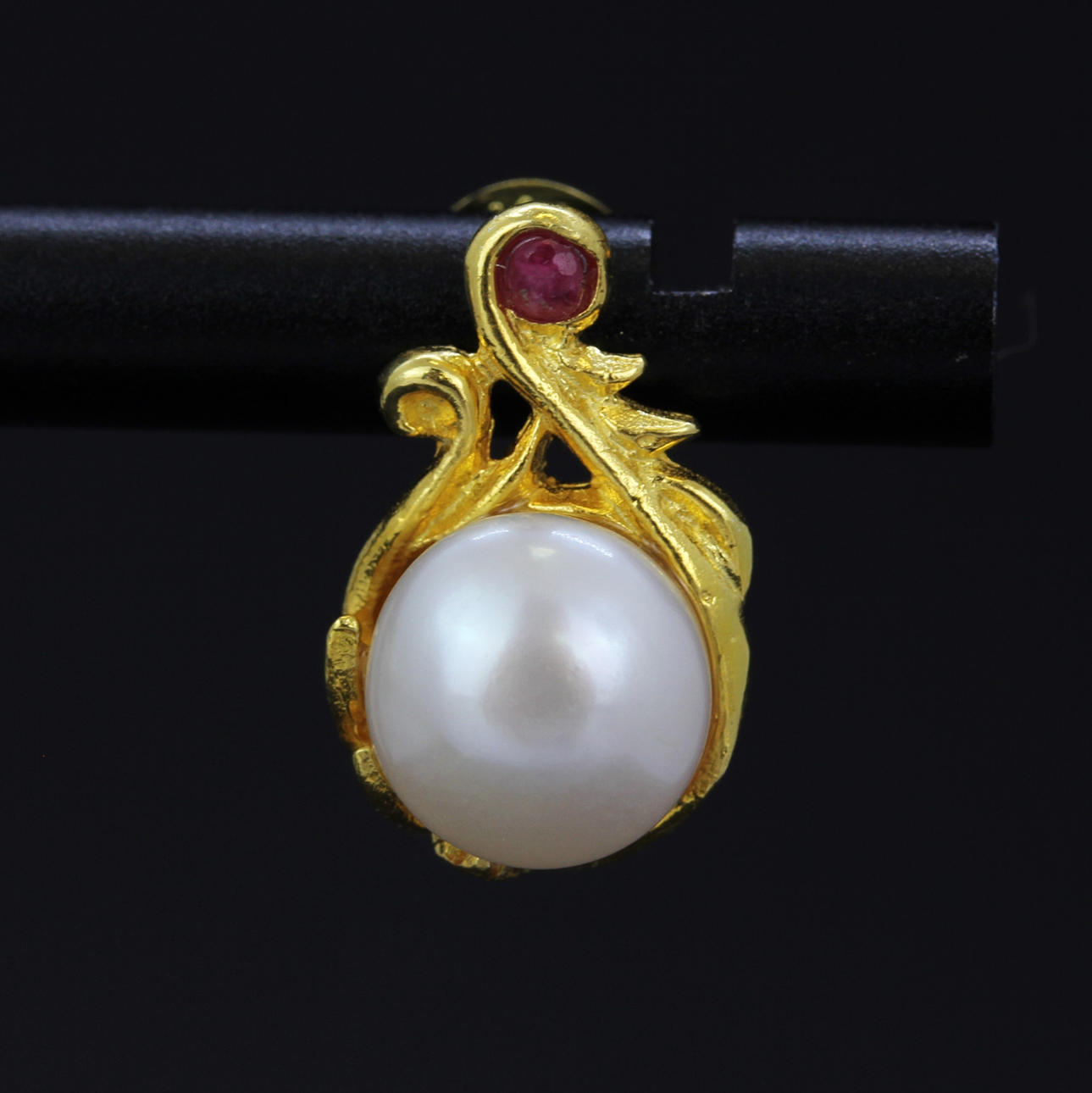ÖRHÄNGEN 925 silver förgyllda med odlad pärla och en liten rubin, ca 1.7cm.