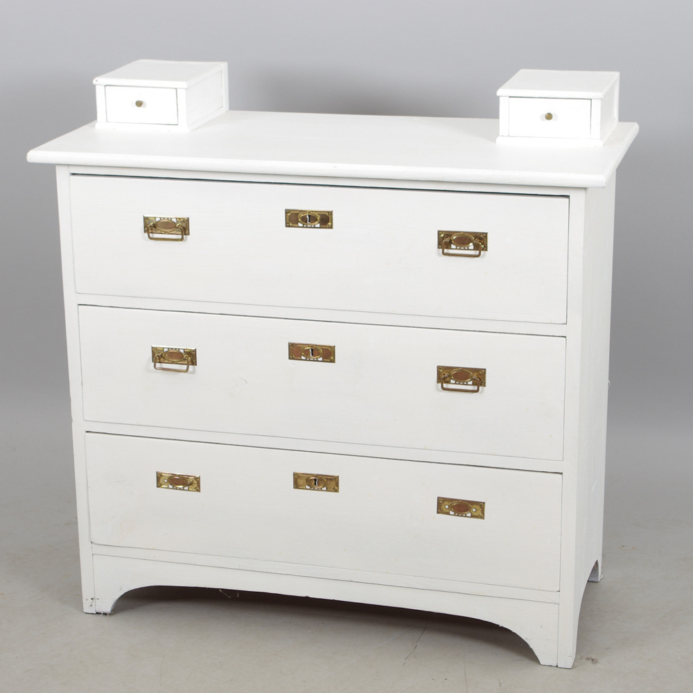 275057. BYRÅ, 3-lådig, vitmålad, jugend.