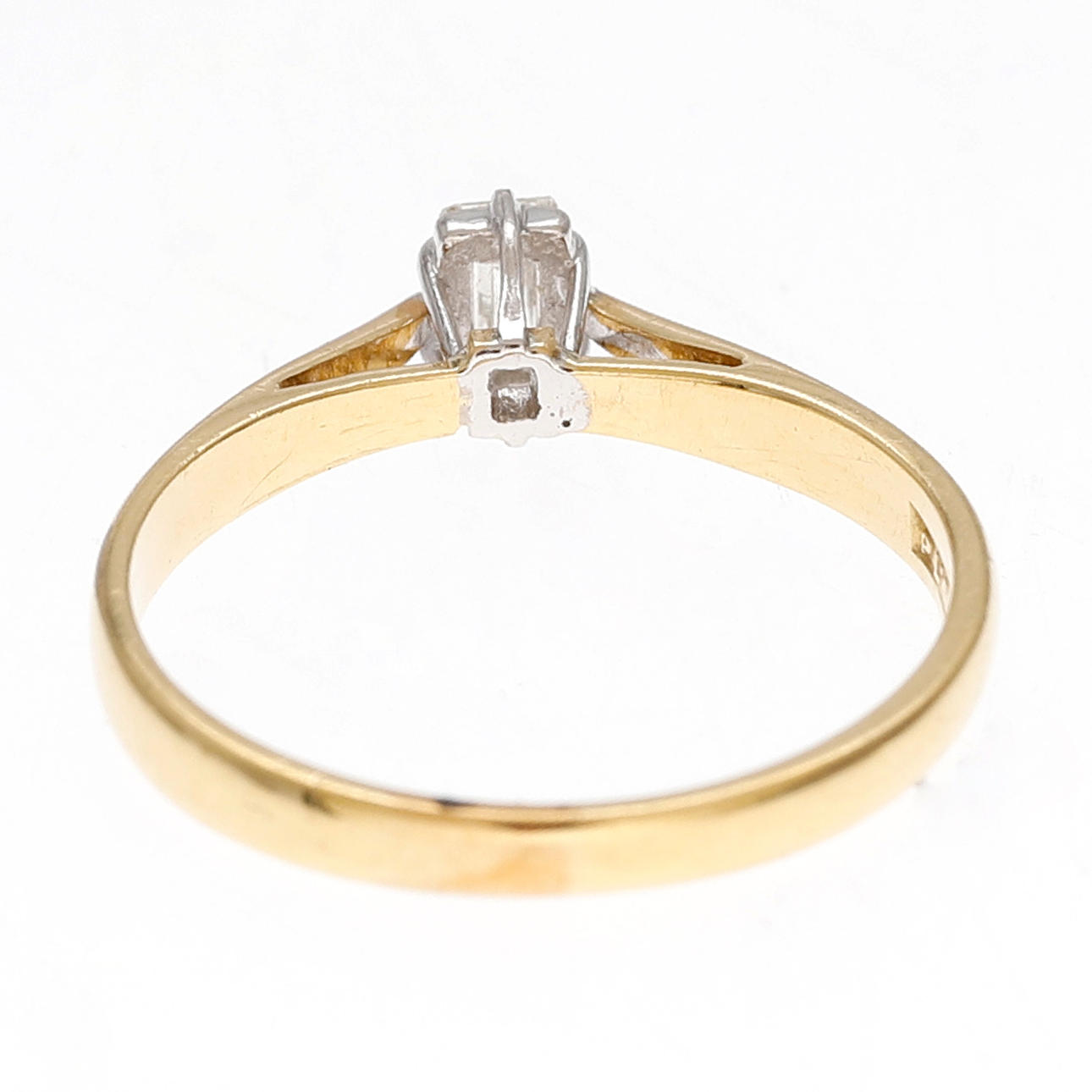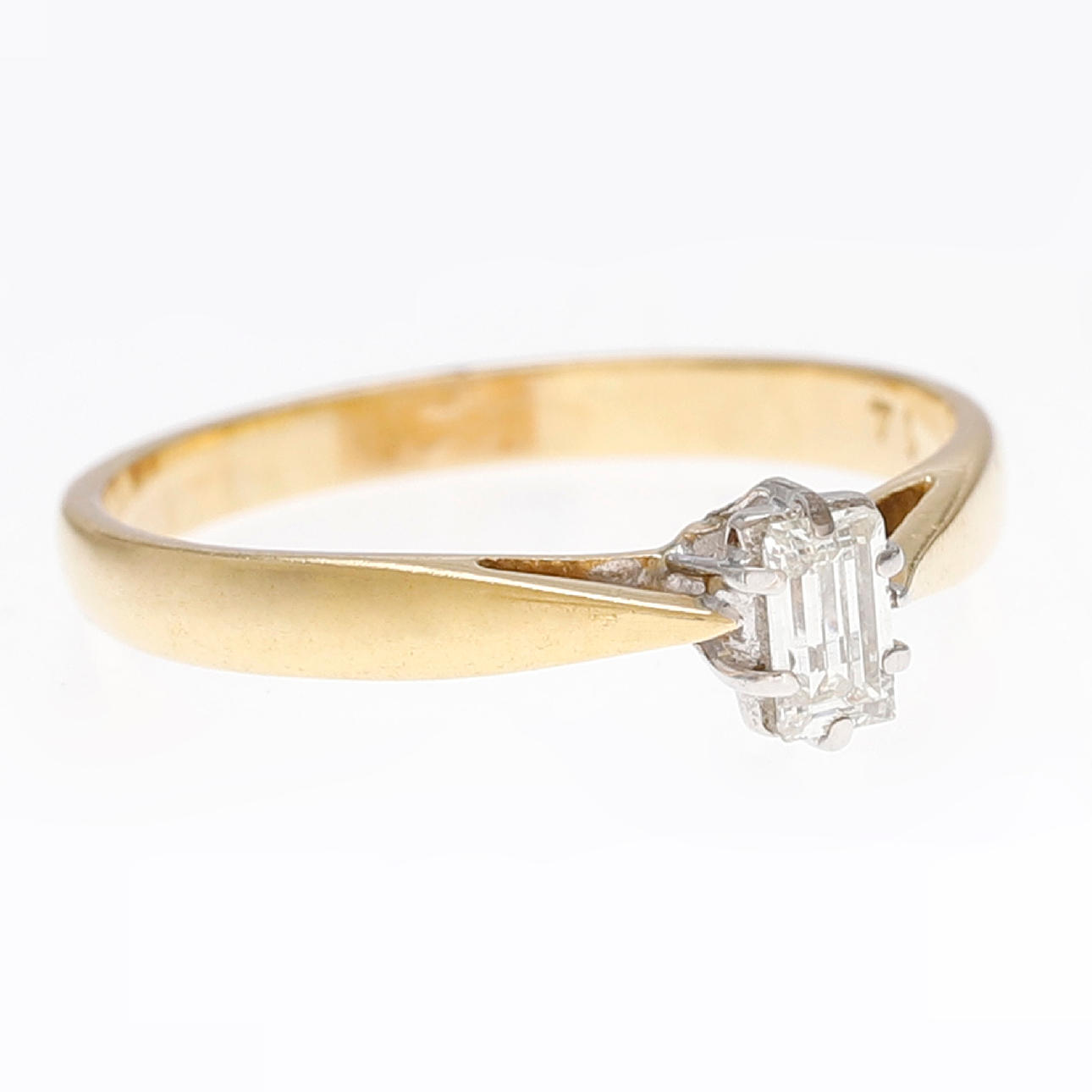 Guld med utsikt i 18K vitguld och baguetteslipad diamant, ca 0.14 ct. Stansade. Storlek 10/50. 1,8 g.
