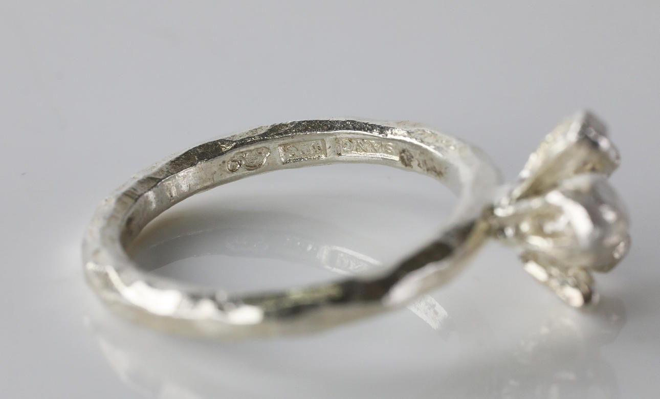 2754707. SANDBERG SWEDEN. ring, silver, blomma.