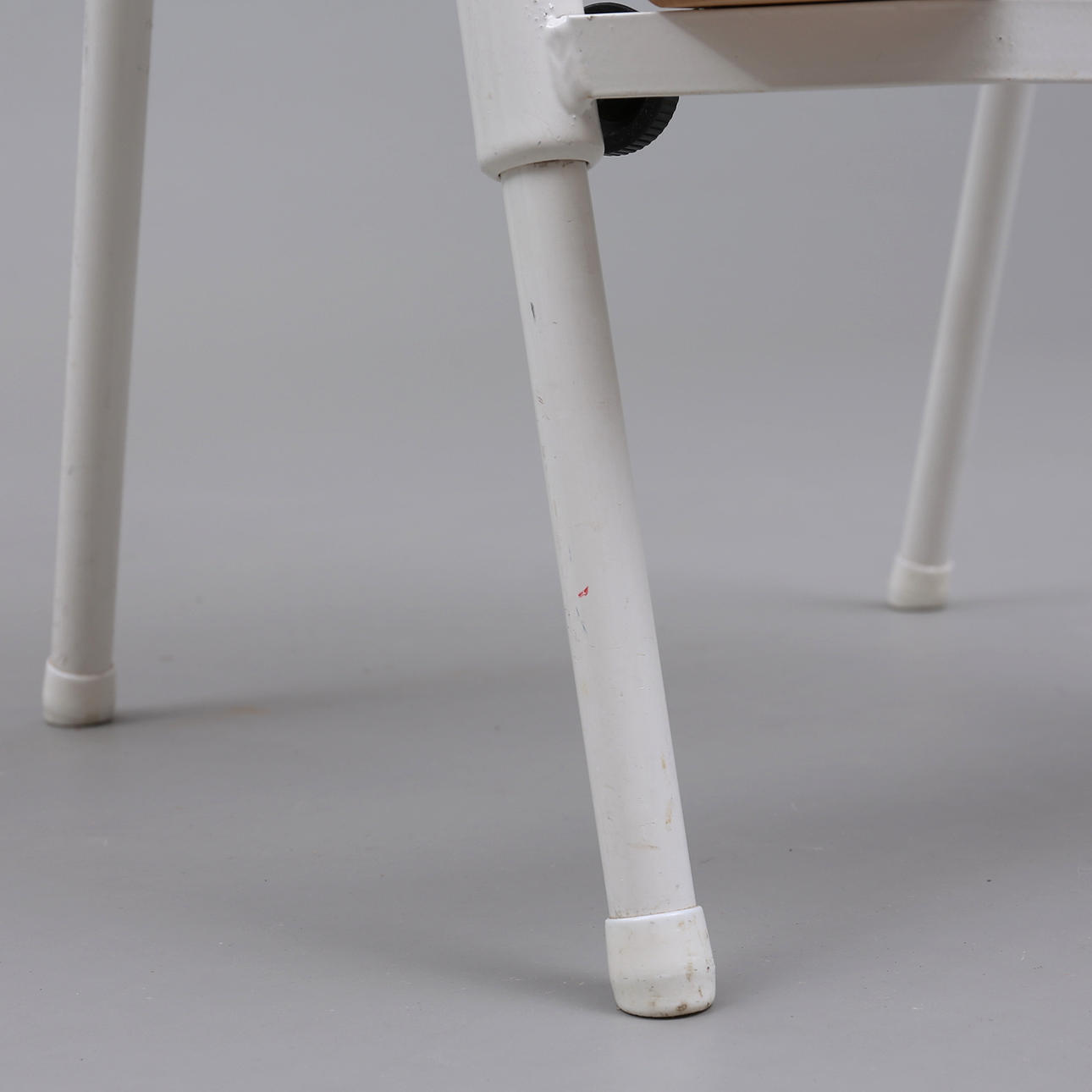 Bruksslitage. Lackslitage på sits. Fotstöd slitet. Märken och fläckar på stomme.