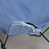 Stomme av svartlackerad rör. Klädsel av orange och blå textil.
