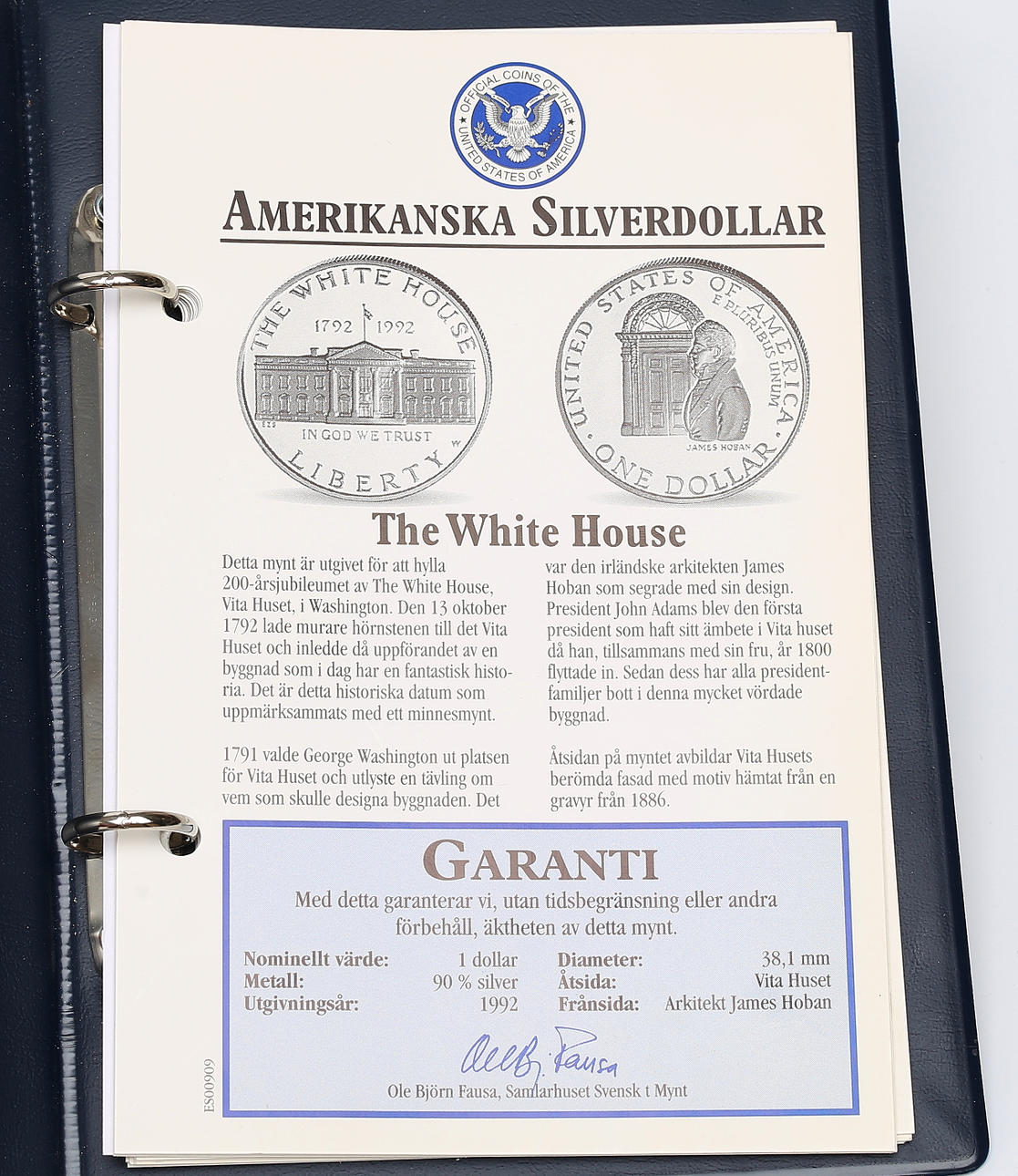 Medföljer garantikort och ägarbevis från Samlarhuset Svenska Mynt.