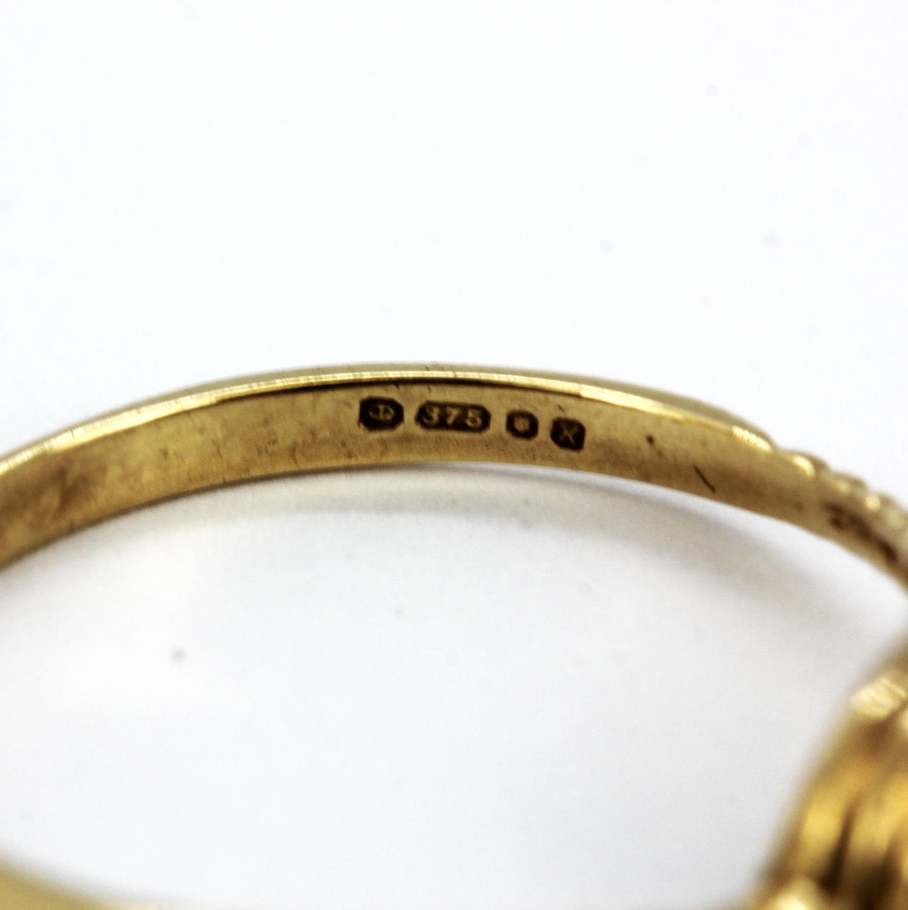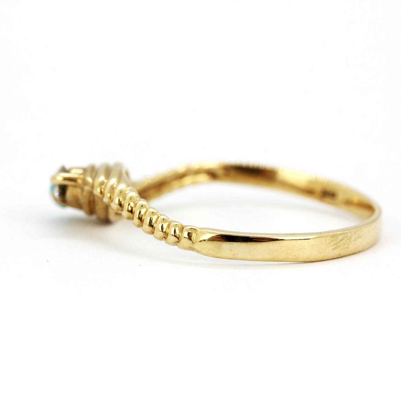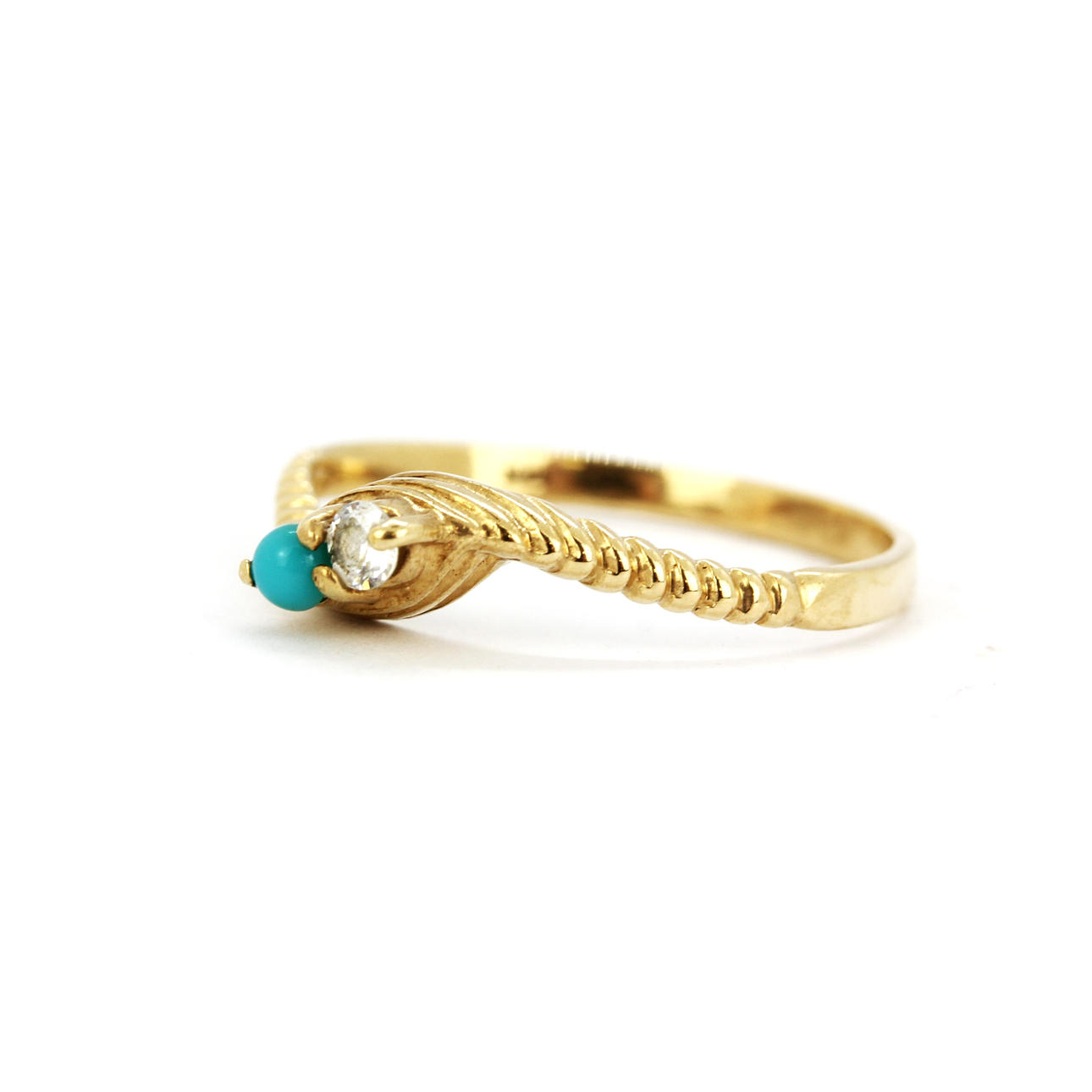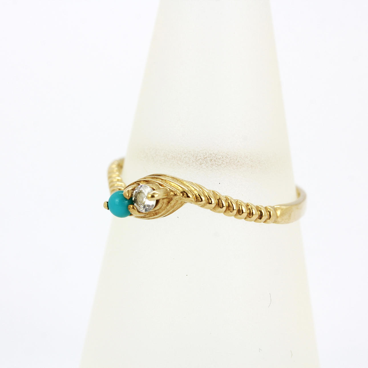 RING 9 karat gult guld med turkos och vit sten, ring storlek N.