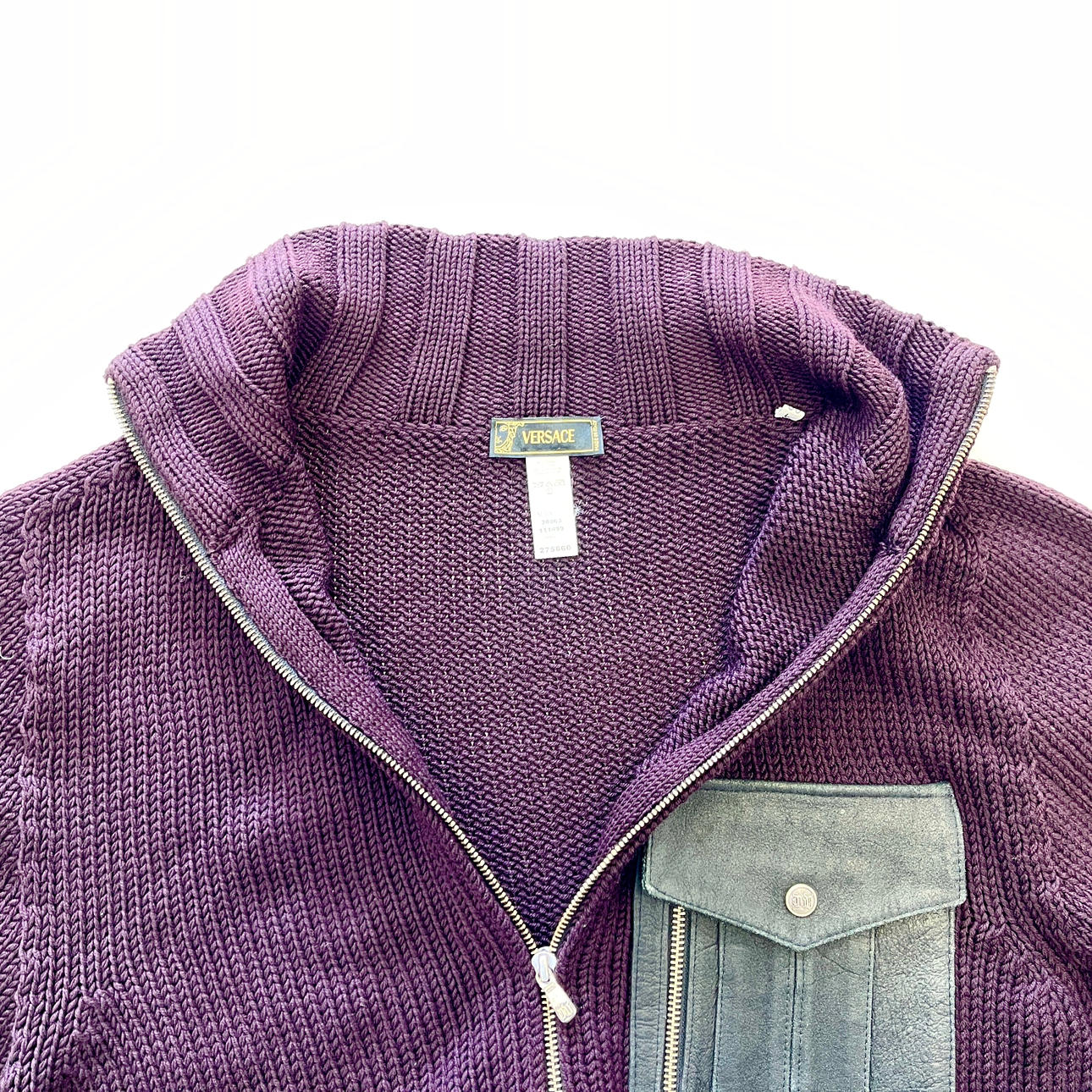 Versace mäns aubergine stickad tröja. Storlek 50. Ärm ca.. 85cm., Längd ca. 75cm., Axel-Shoulder ca. 47centimeter., Pit-Pit ca. 52.