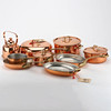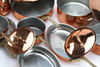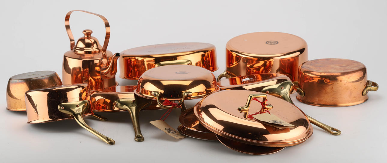 Bestående av: kastruller, traktörpannor, ungsformar och glöggkittel. Koppar med handtag i mässing, Diameter på grytorna: 14 cm, 15 cm 17 cm och 21 cm