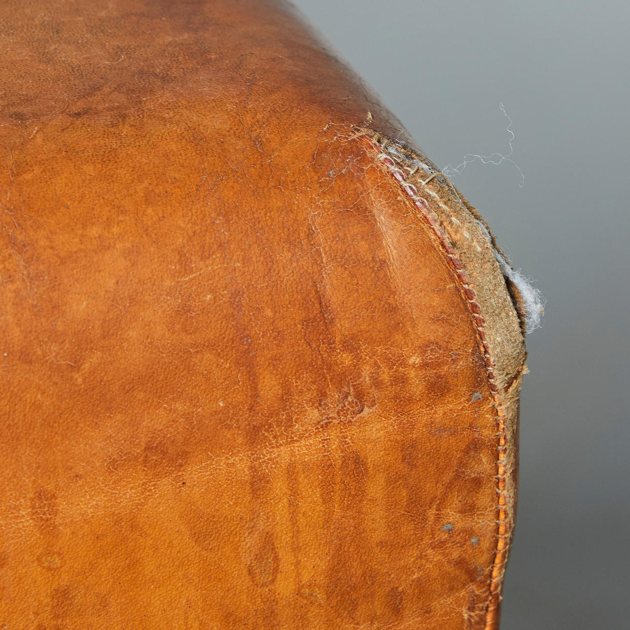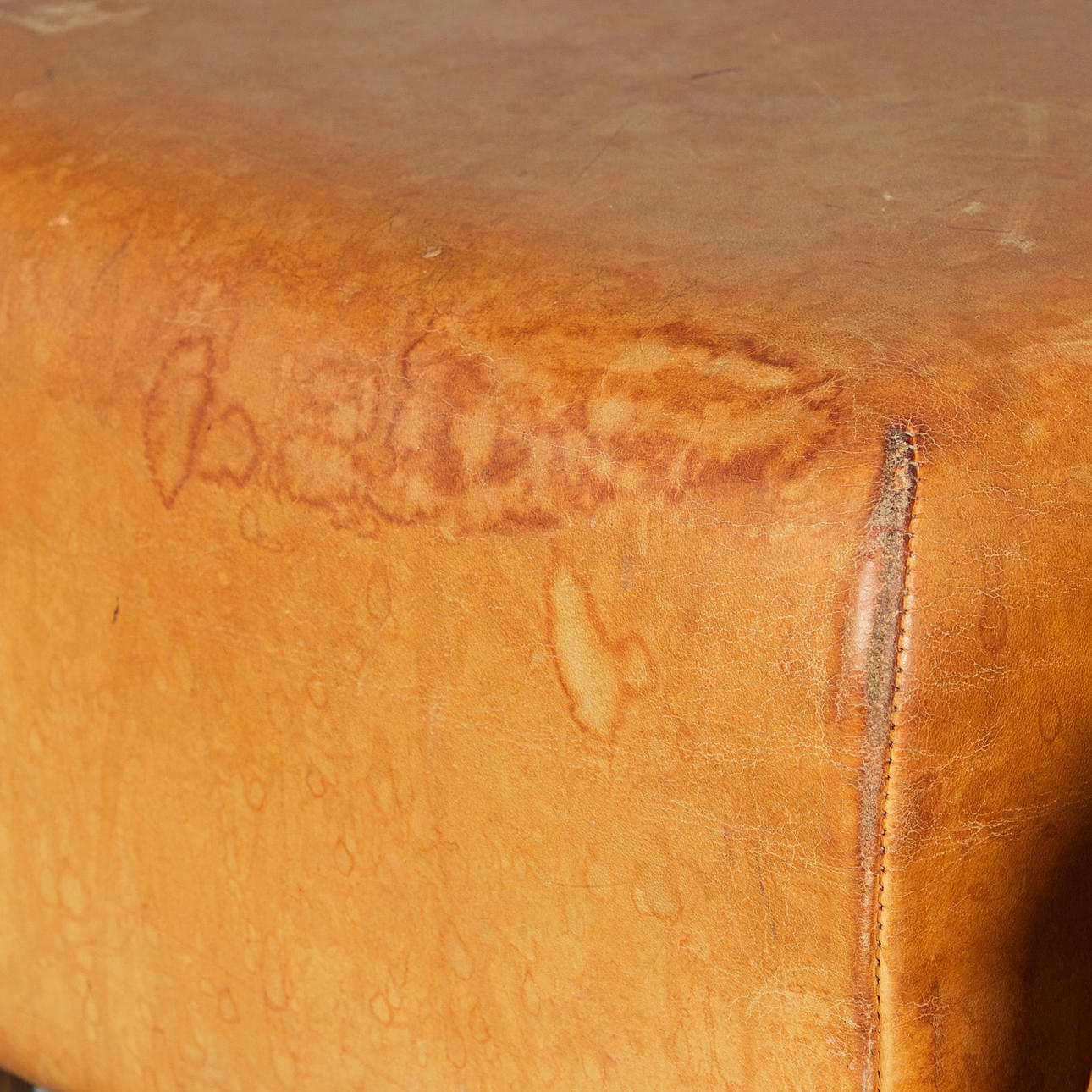 Åldersanpassade tecken på användning och gnidning, smärre repor i vissa fall, läderpatinerat och fläckat på platser, sömmar delvis borttagna, ett säte med enstaka bucklor.