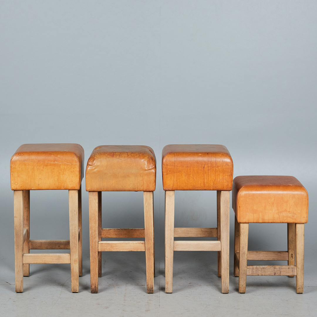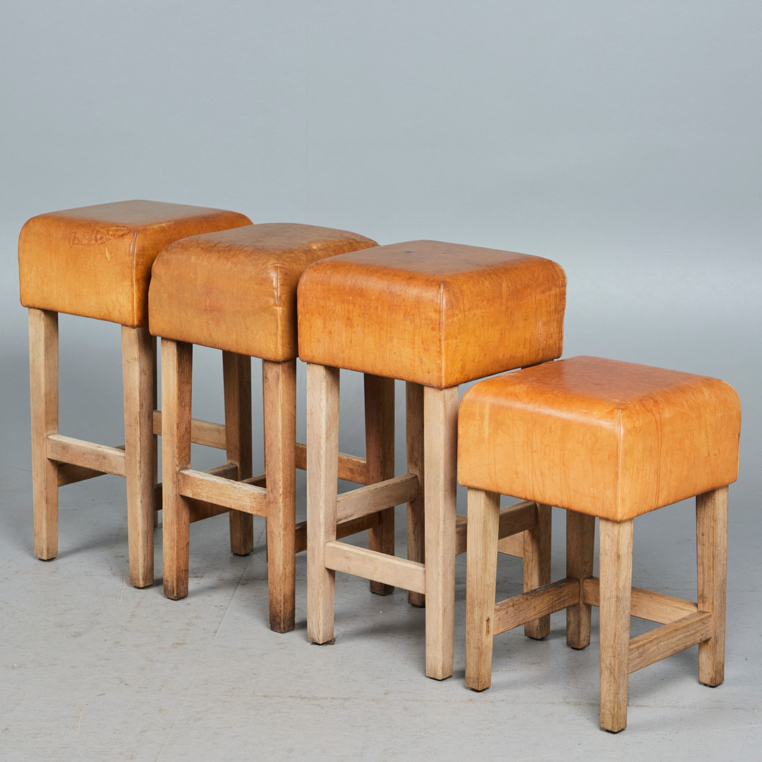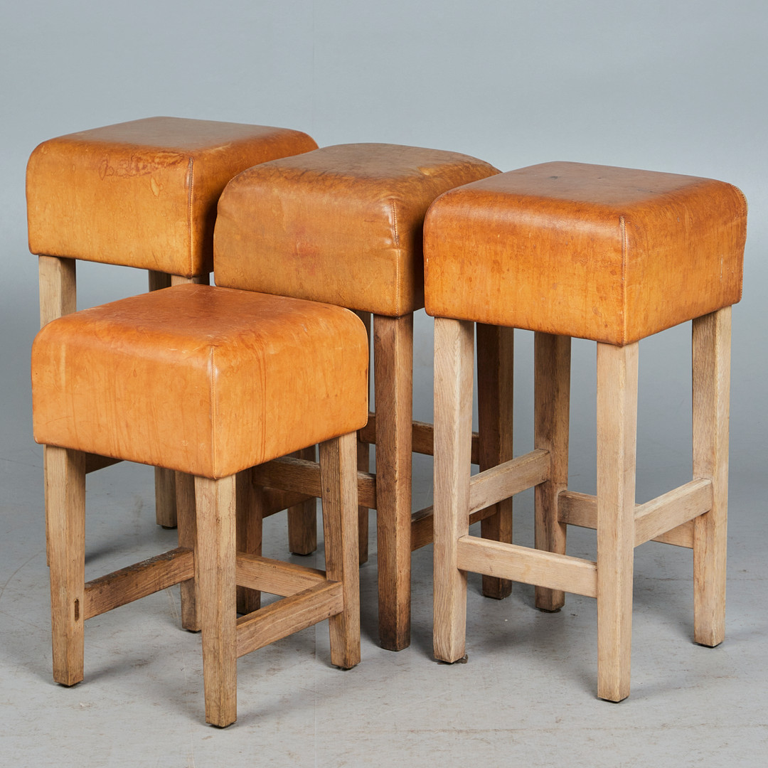 2770012. Fyra pallar/barstolar, ek, läder (4).