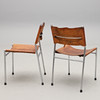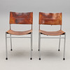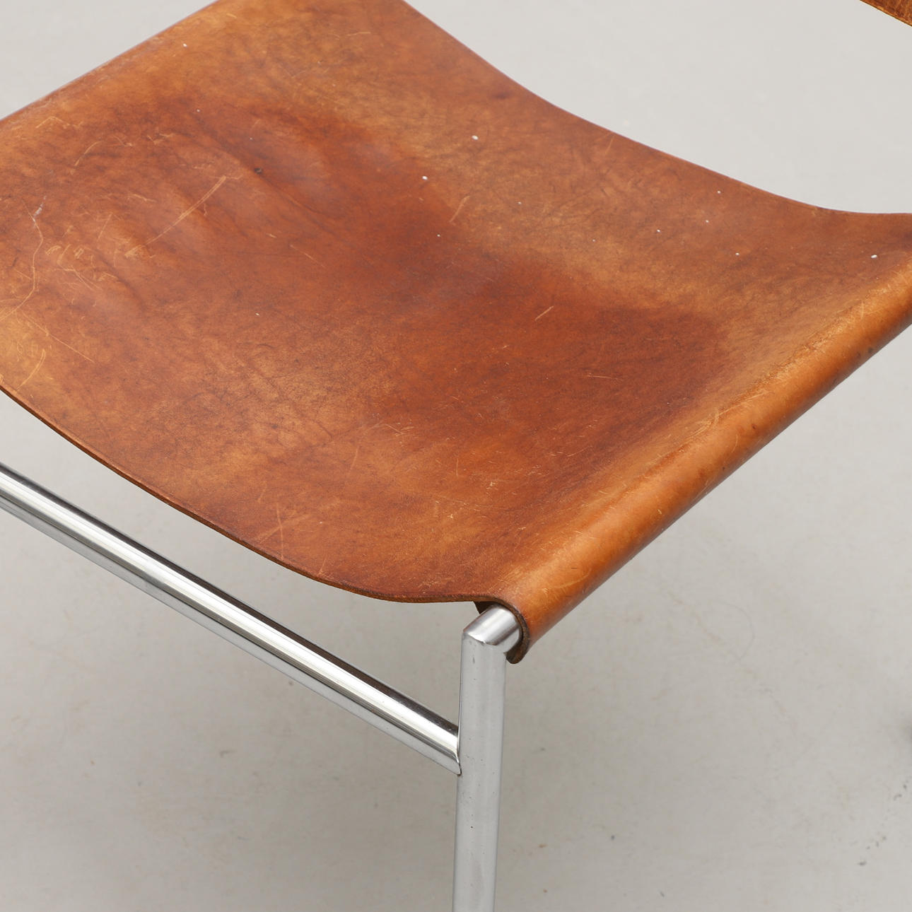 Kromad stålrörsstomme, sits och rygg i cognacsfärgat läder. Bredd 43, sitthöjd c:a 40 cm.