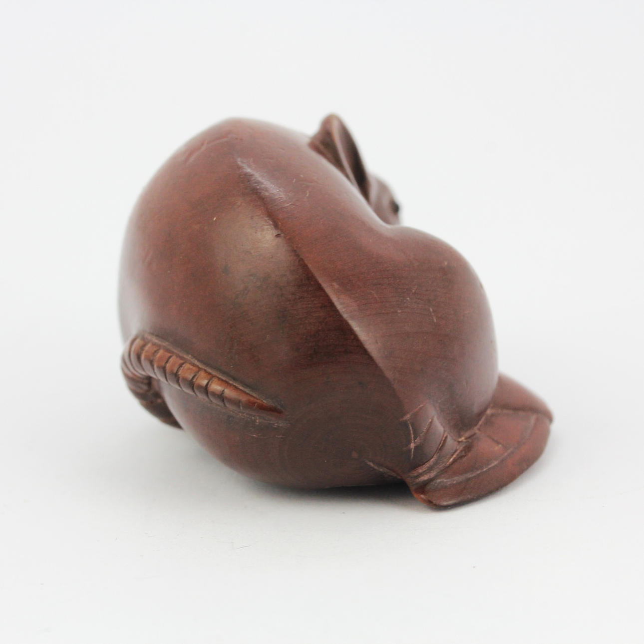 En trä netsuke av en råtta som lägger ner, L. 5centimeter.