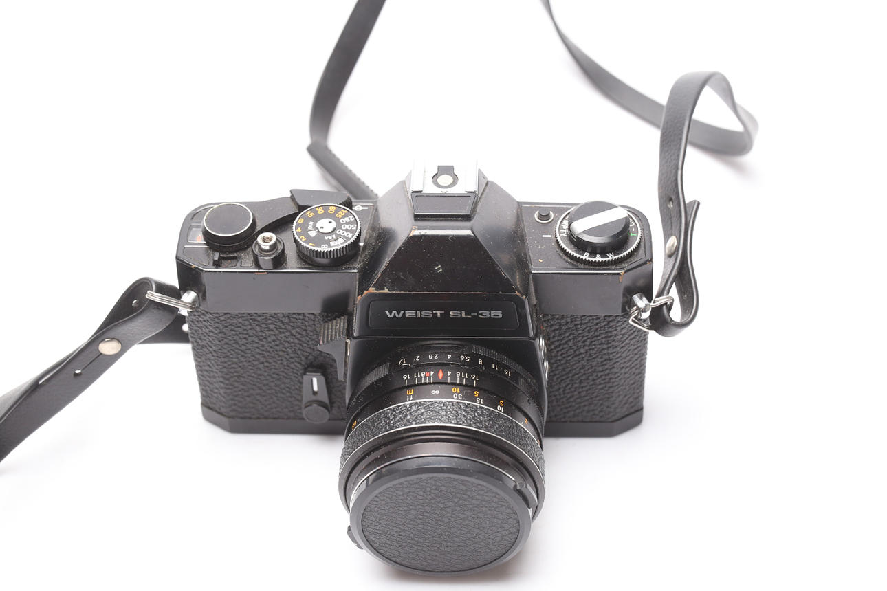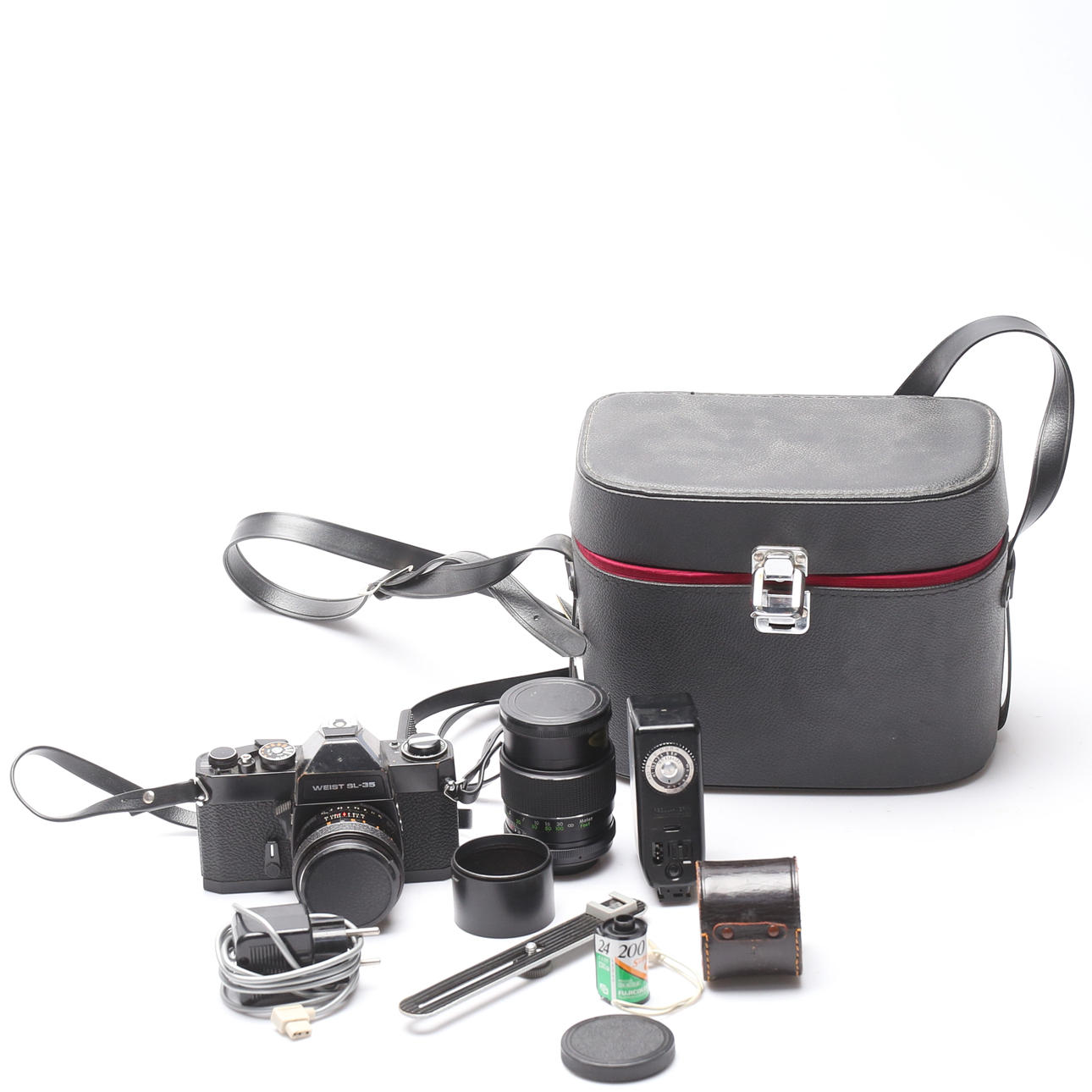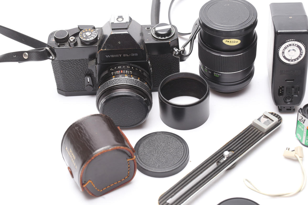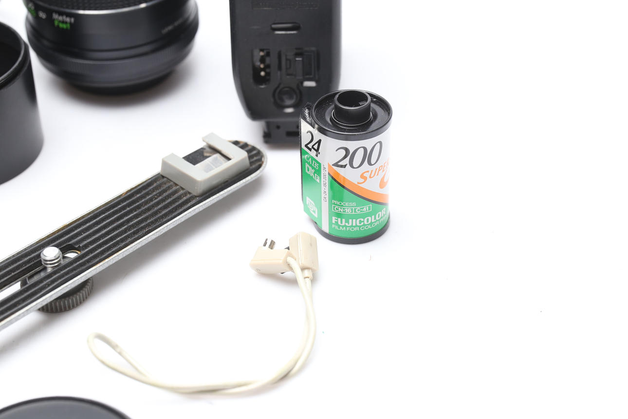 I väska. Objektiv, blixt.