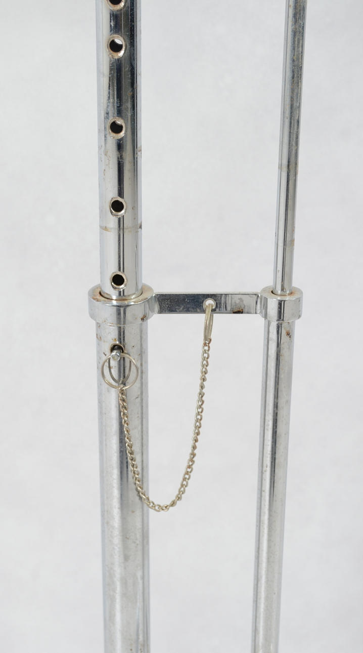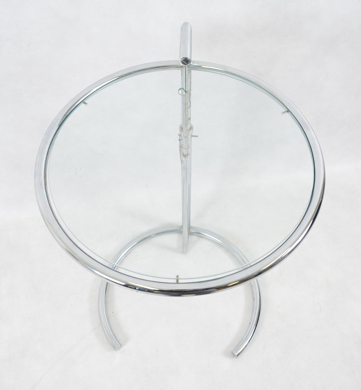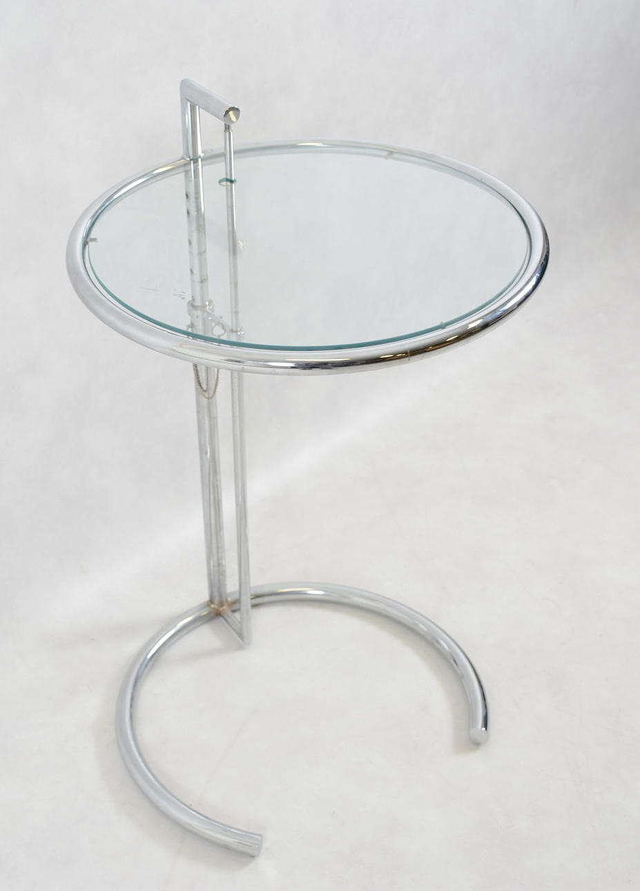 Kromad metallställning, glasskiva. Höj och sänkbar. Diameter ca 51 cm.