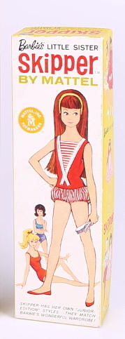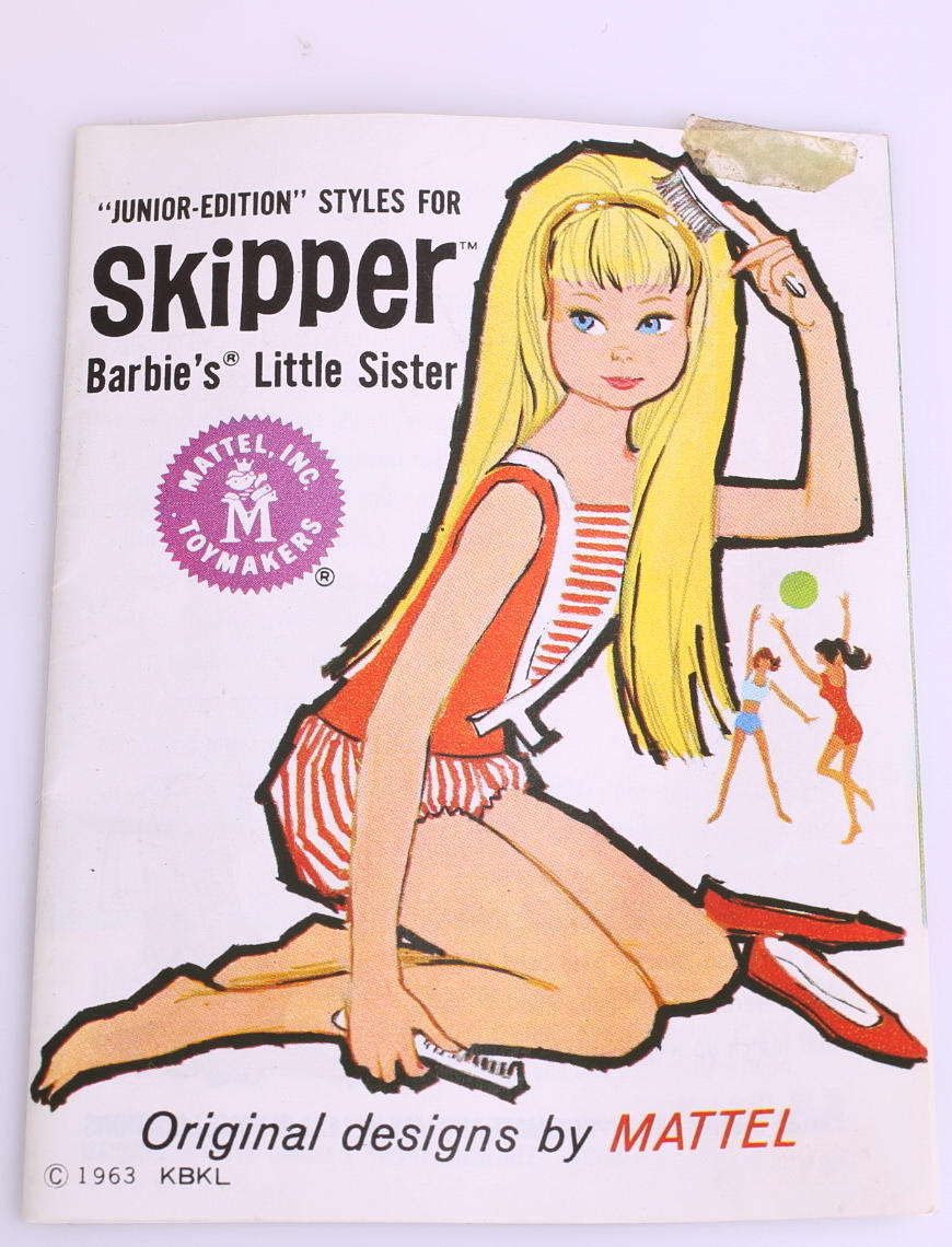 Skipper docka höjd med kofta, mössa, skor, kjol i originalkartong. Broschyrer.
