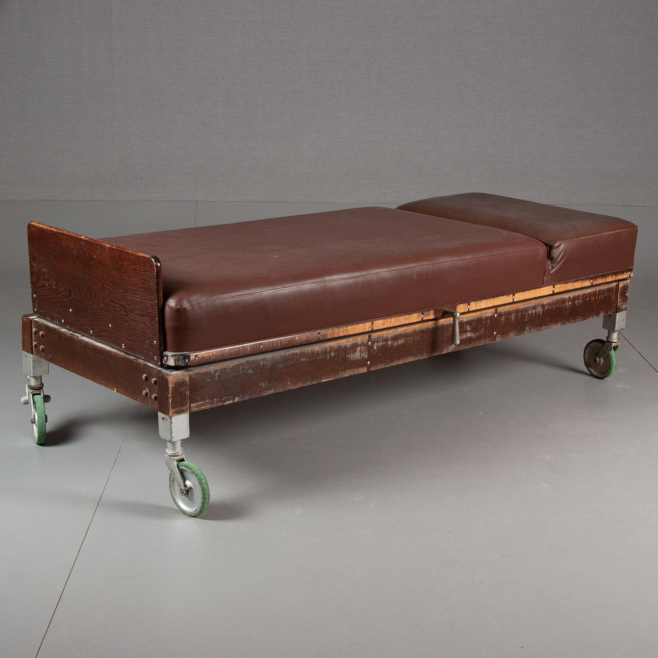 Bonat trä med brun galonklädsel.