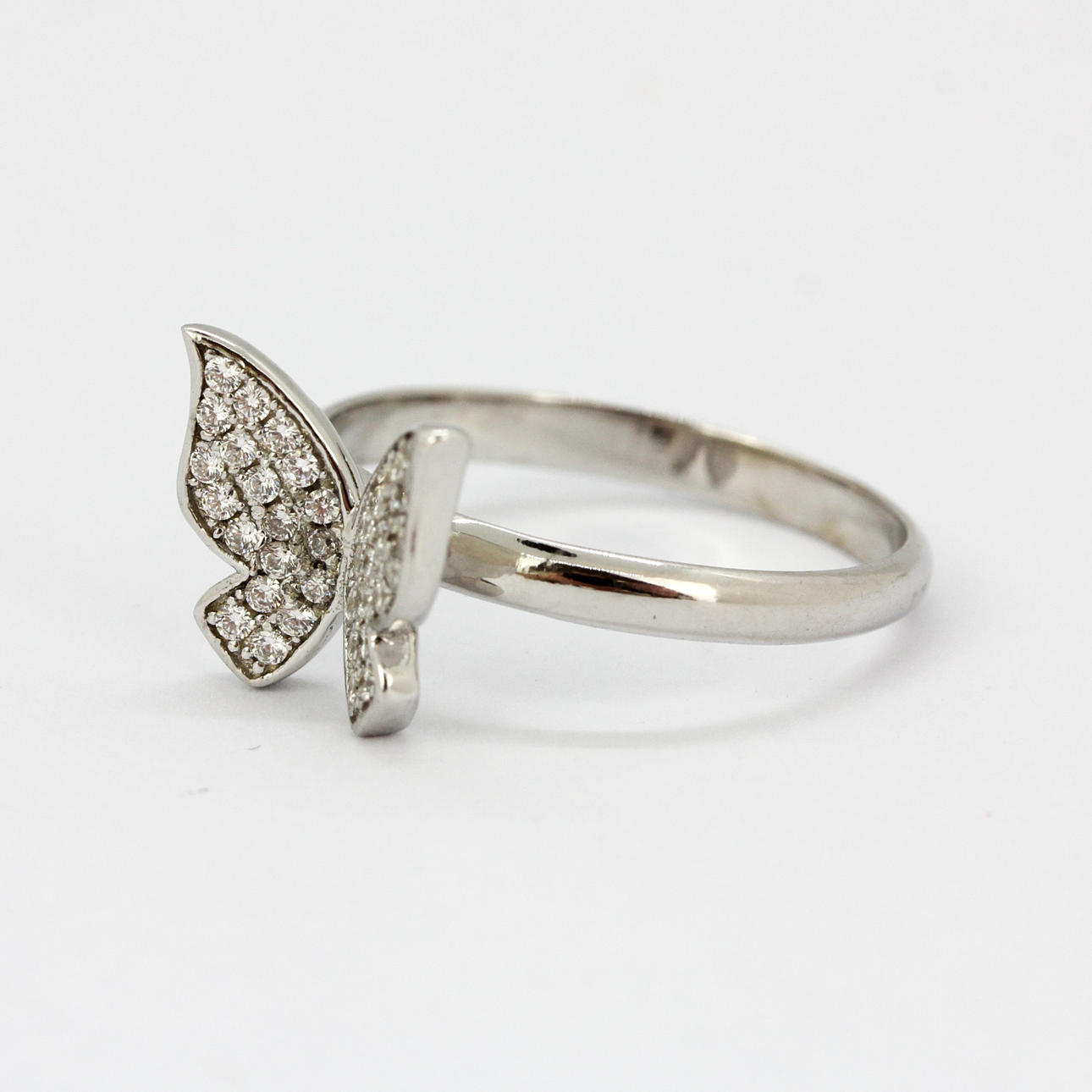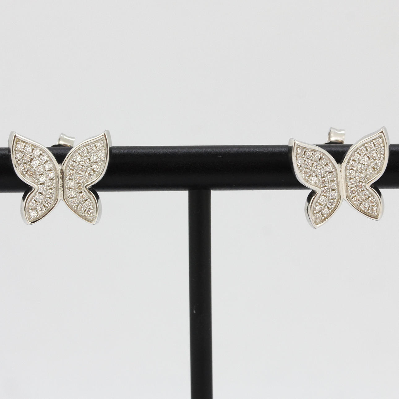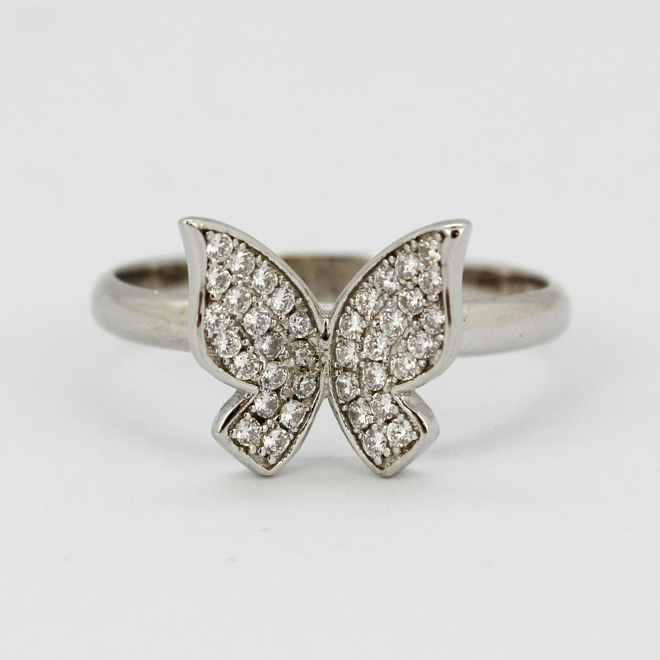 En 925 silver fjäril formad ring med små vita stenar tillsammans med ett par matchande örhängen, ring storlek N. örhänge W. 1,3 cm.