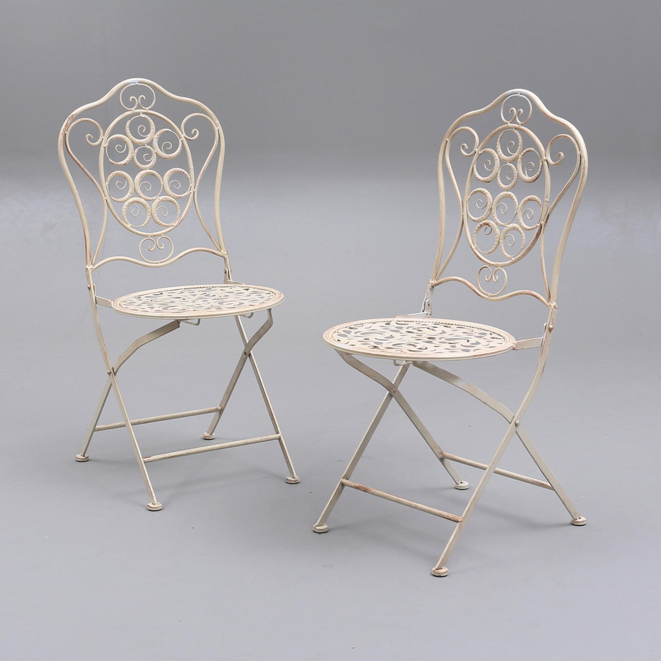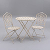 Bord, höjd, ca 75 cm, diameter, ca 70 cm. 2 st, stolar, rygghöjd, ca 93 cm, sitthöjd, ca, 44 cm.