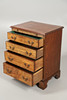 Med borstglas och fyra jämnt staplade lådor med mässingshandtag, på konsolfötter. Översta lådan är fodrad med grön bajs. Höjd 79cm x Bredd 60cm x Djup 45cm.