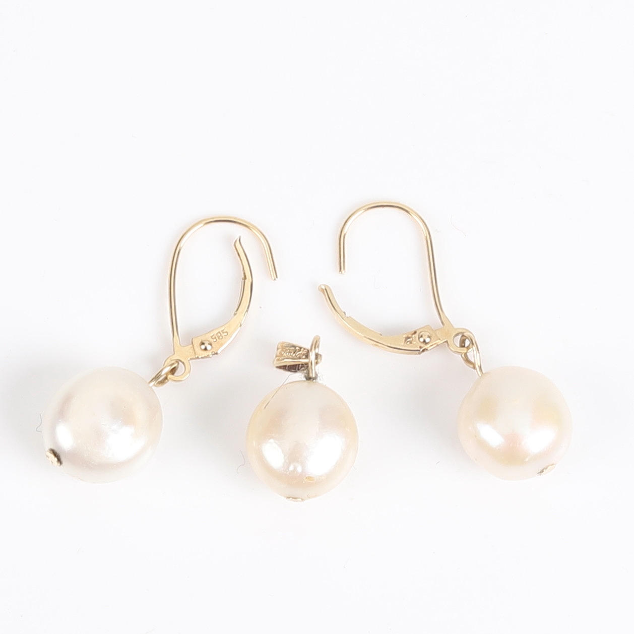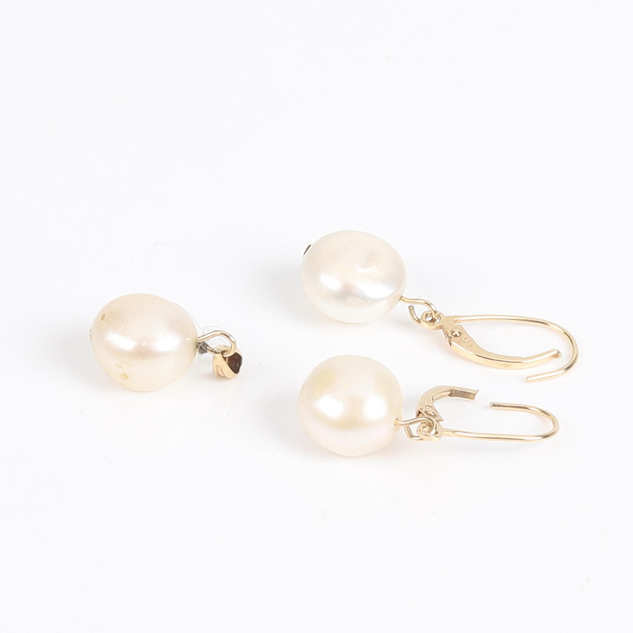 Hänge och ett par örhängen i 14K guld med odlade pärlor