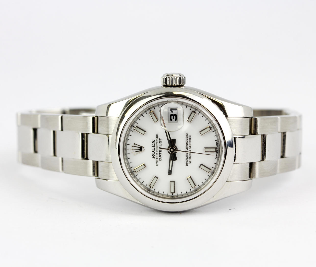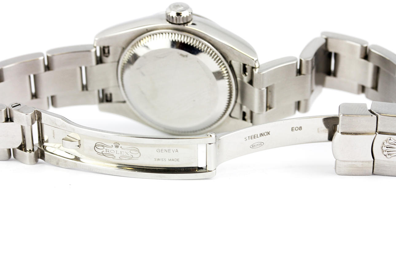 A 2007 rostfritt stål Datejust Rolex armbandsur (nr. M394455) med datumfunktion, urtavla storlek 2,9 x 2,9 cm.