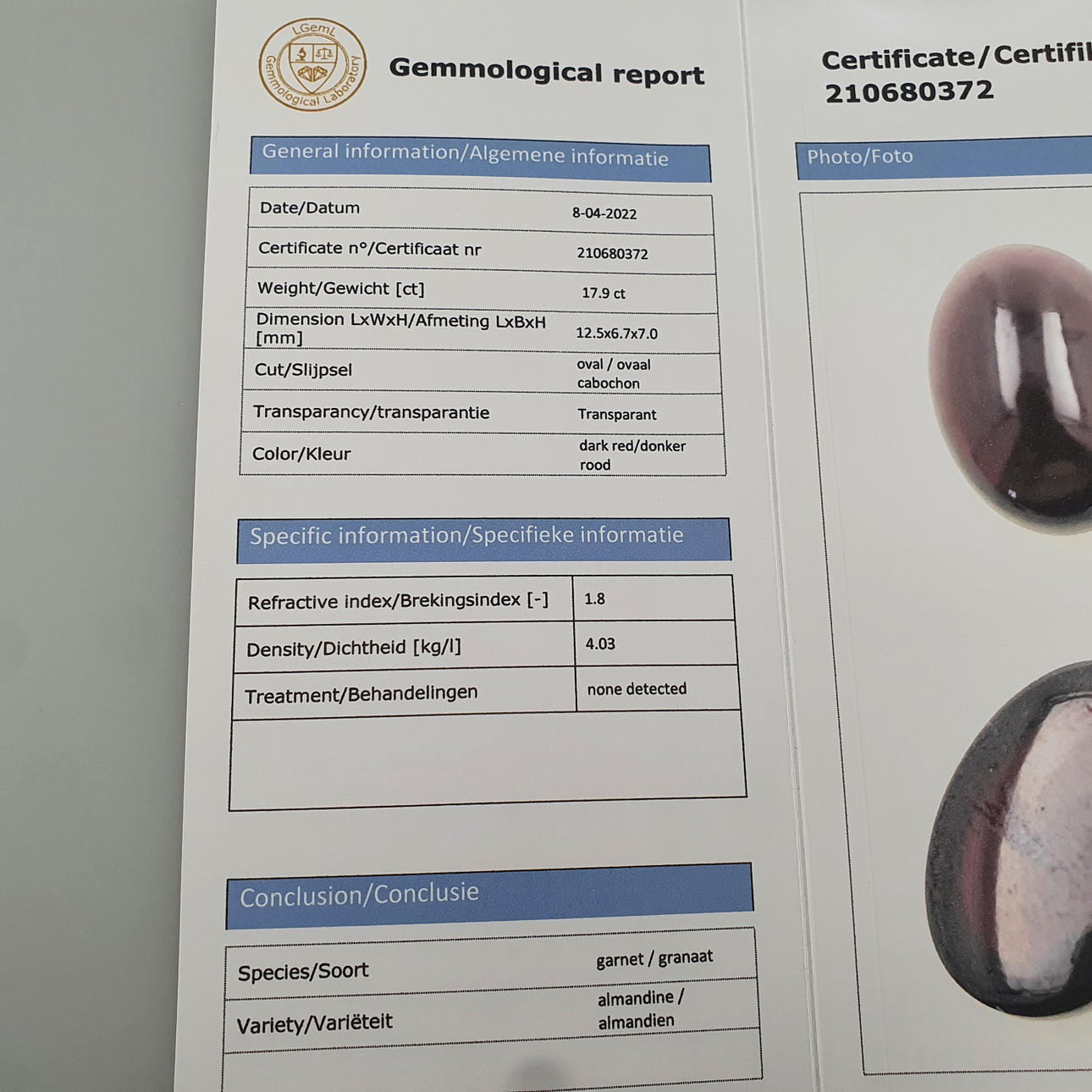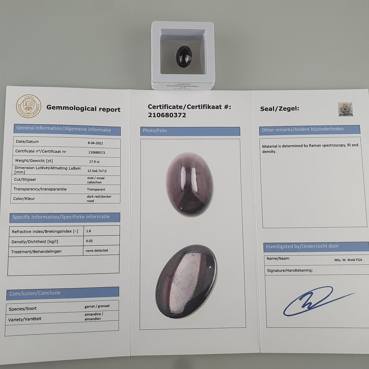 17.9cts Almandine Granat. Oval cabochon Genomskinlig.