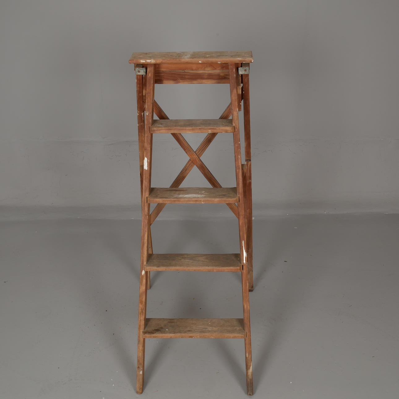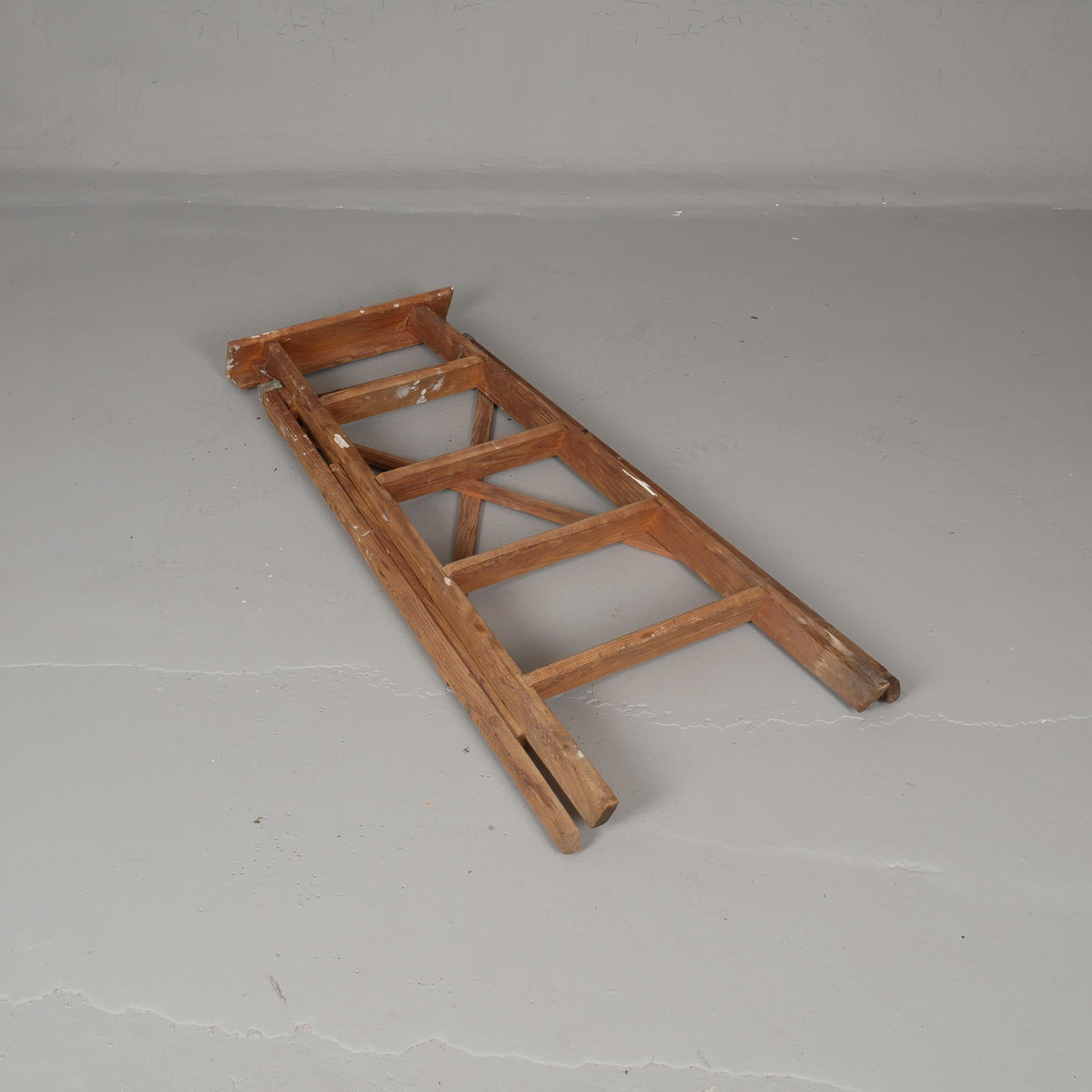 Bruksslitage, målarfläckar, översta steget med 4 äldre skruvhål.