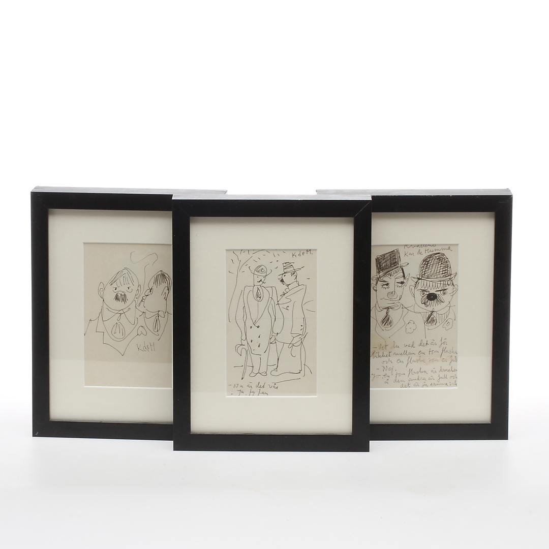 278725. ERIK (KAR DE MUMMA) ZETTERSTRÖM. Tuschteckningar 3 st, signerade.