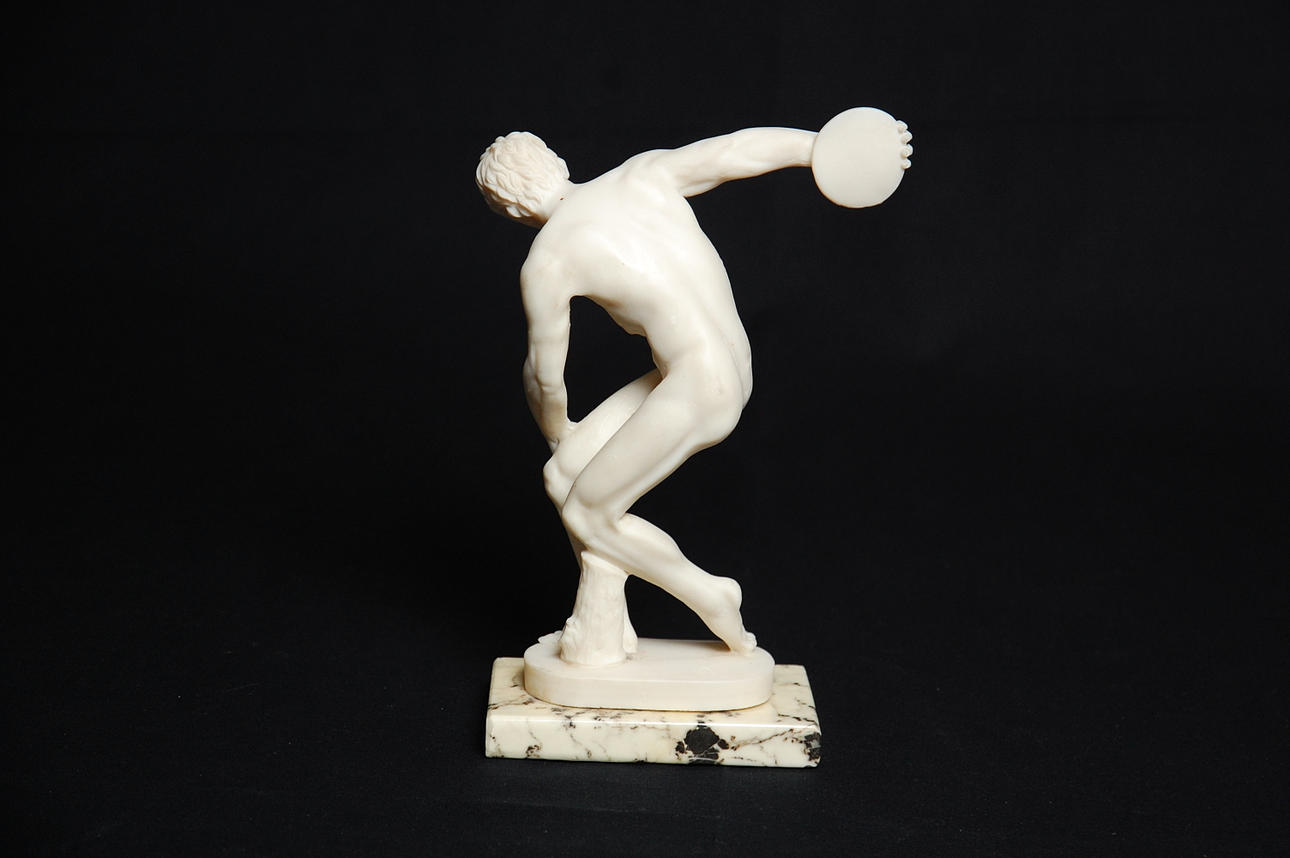 278756. SKULPTUR, " Diskuskastaren " sten, på marmorsockel.