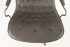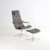 Fåtölj med fotpall, förkromad benställning, klädsel i grått skinn. Design Jan Ekström för Mio Möbler.