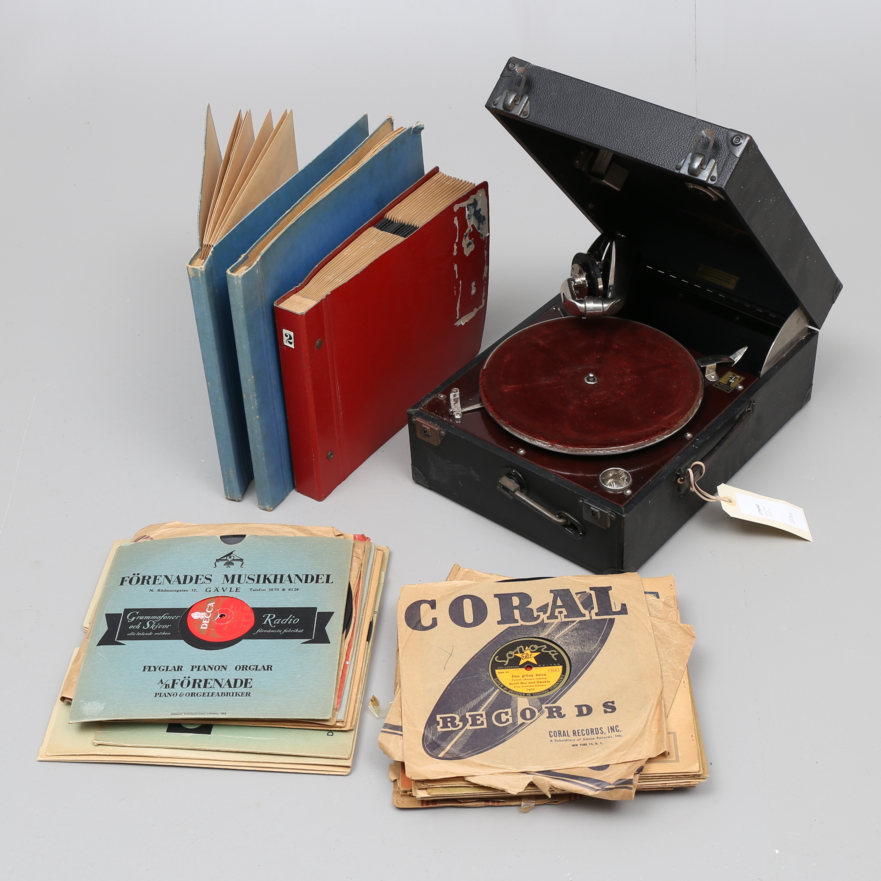 279042. RESEGRAMMOFON samt STENKAKOR.