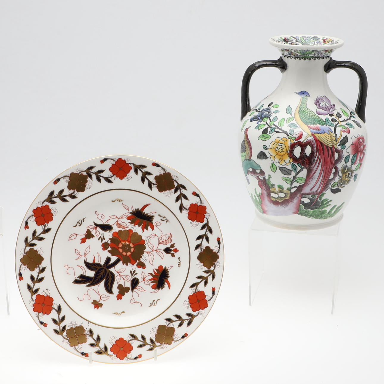 inklusive en sucrier och lock, cirka 1800, bat tryckt en-grisaille med landskapsscener, en Copeland Spode tvåhanterad kanna och en Imari-mönsterplatta, tillsammans med en murare keramikkanna, Royal Crown Deby tallrikar etc.