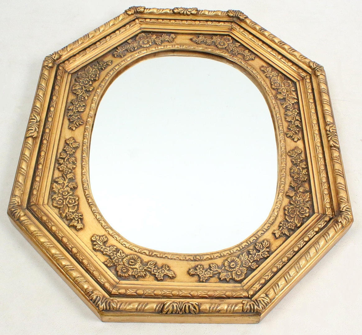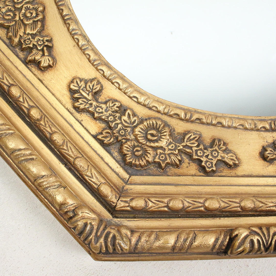 Åttkantig spegel/väggspegel, träram med guldfinish