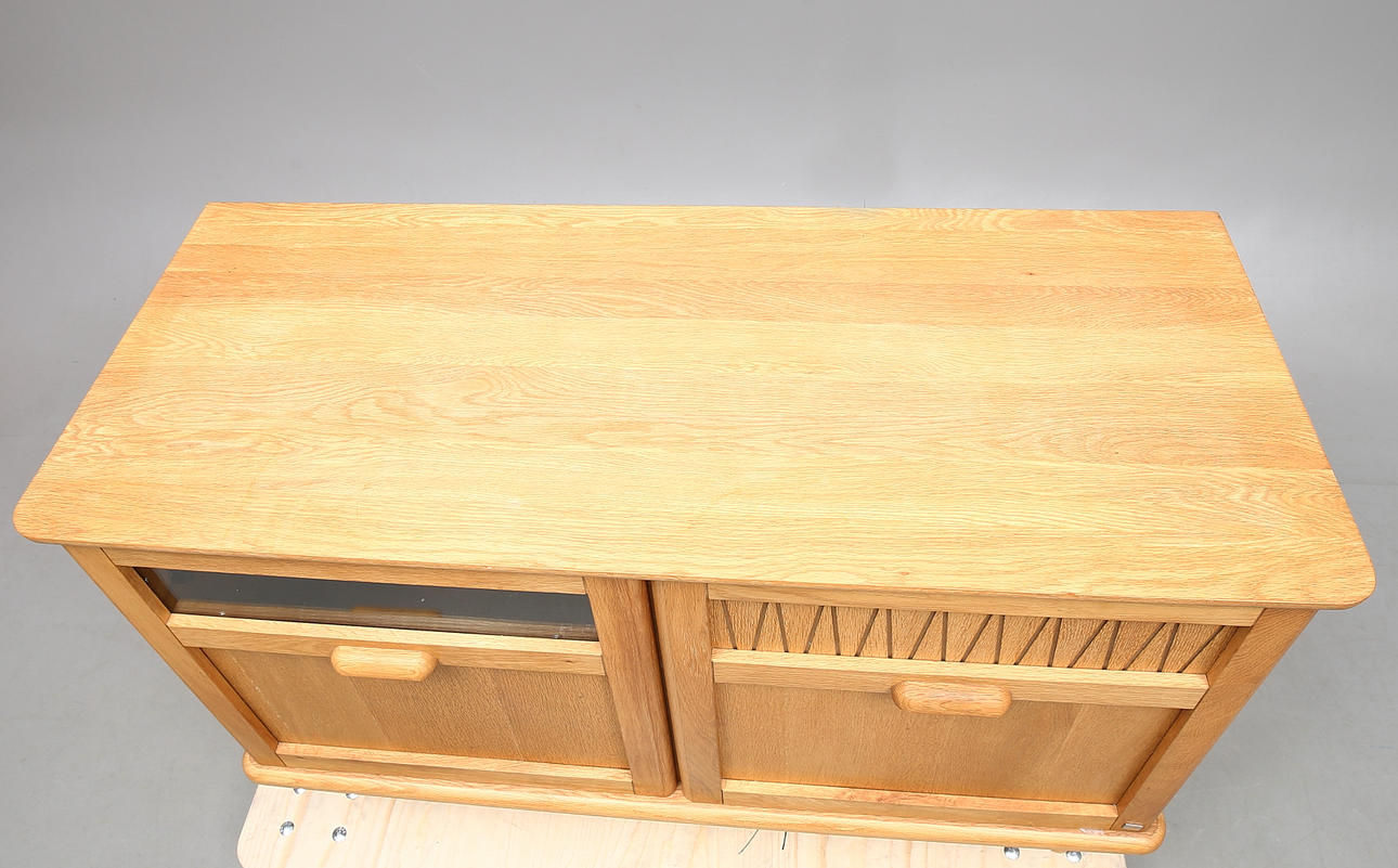 Medföljer extra delar för utbyta mellan träpanel och glasfronter. Längd ca 110, djup ca 44,5 höjd ca 78 cm.