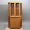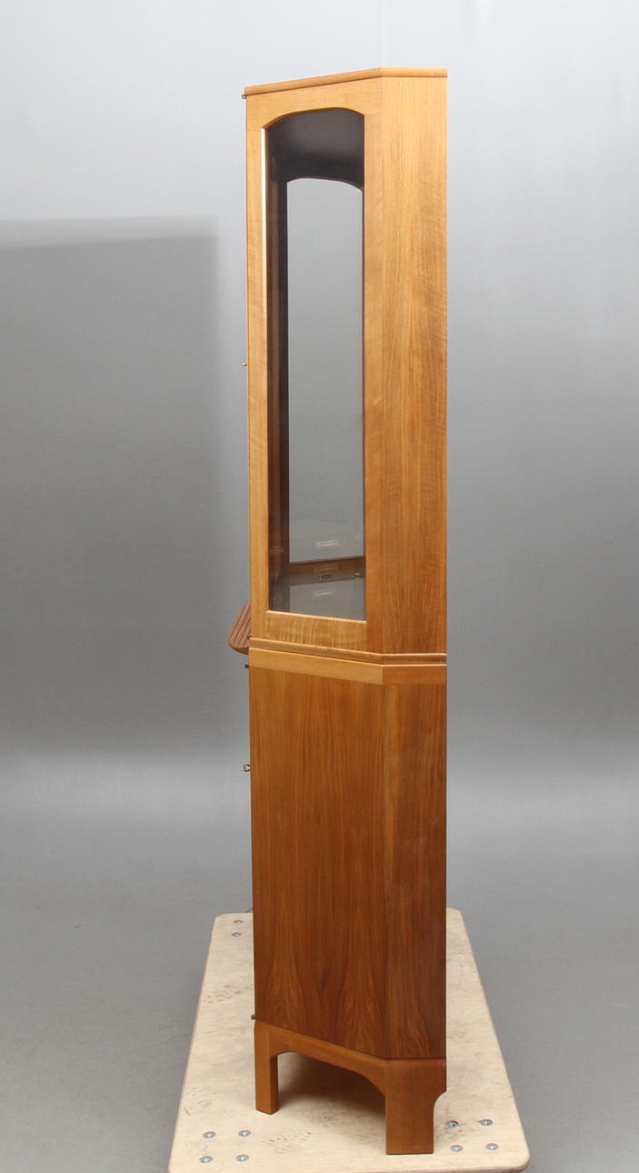Utdragbar skiva. 3 st hyllplan i glas. Längd 96, bredd 38, höjd 177 cm.