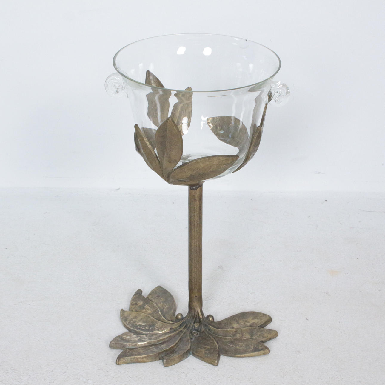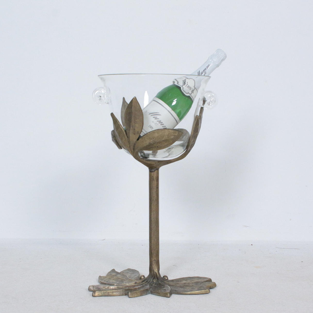 blommig mousserande vin/vinkylare, brons/mässing bas, Mått ca.: Höjd 49 cm, diameter 28 cm.