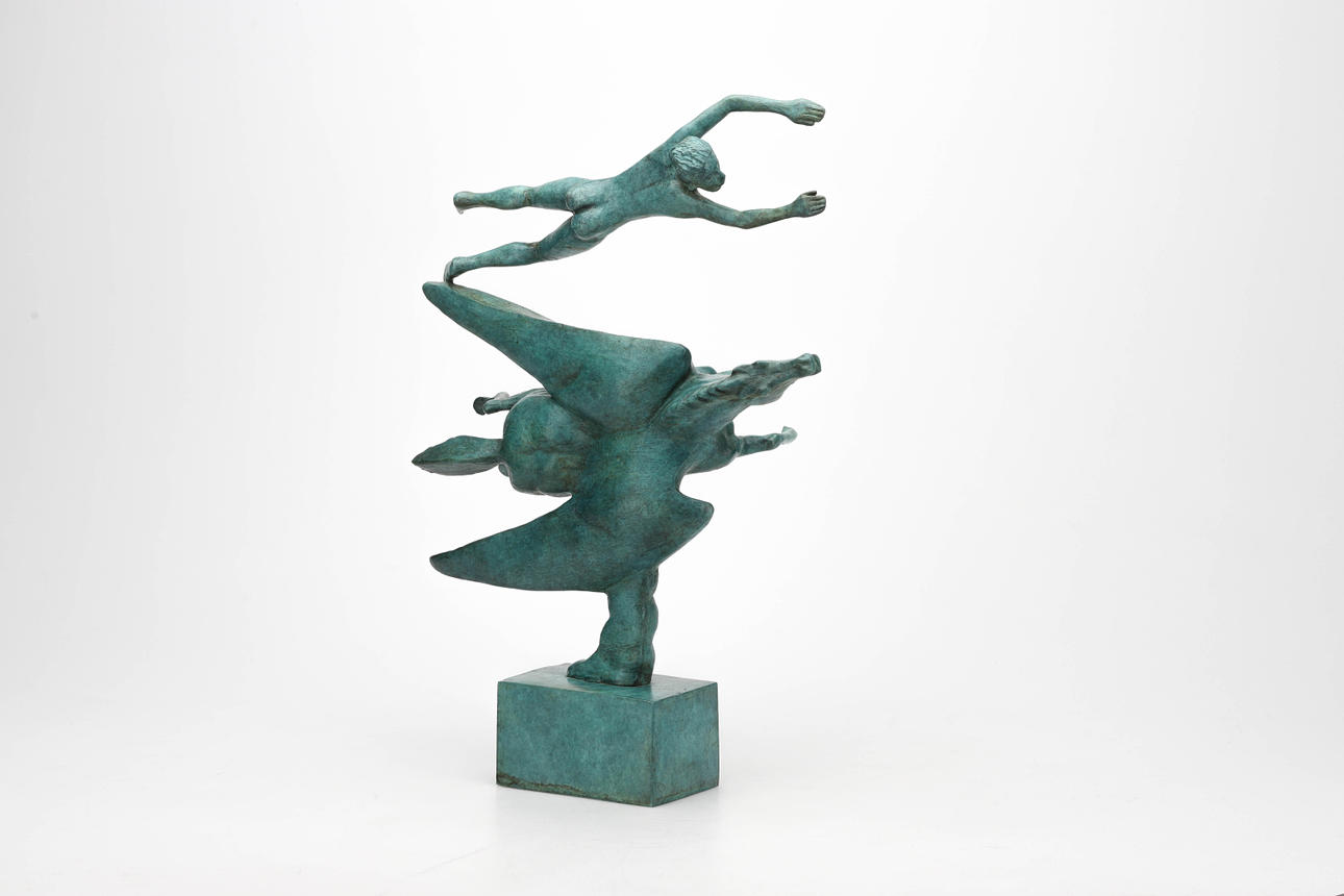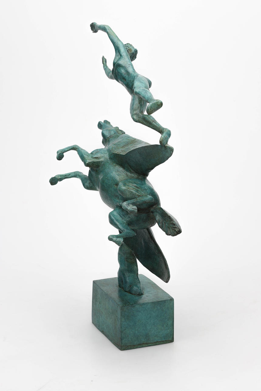 CARL MILLES. EFTER. Människan och Pegasus, grönpatinerad brons.