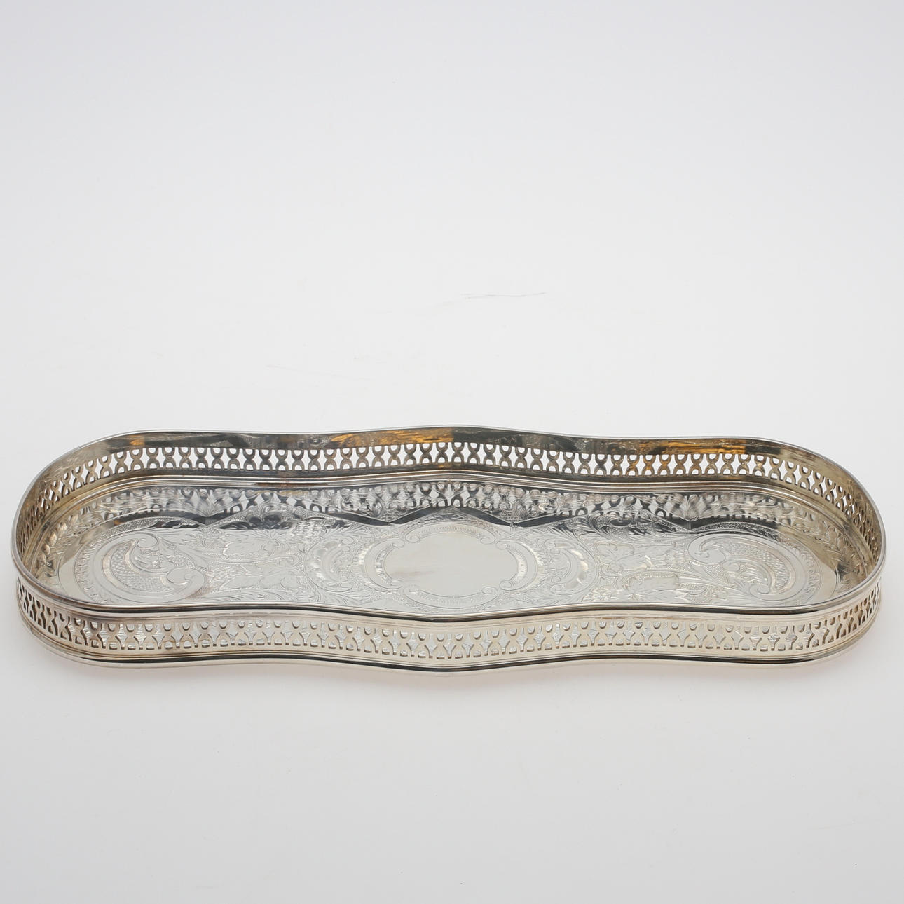1 st serveringsbricka, nysilver, längd 40 cm.