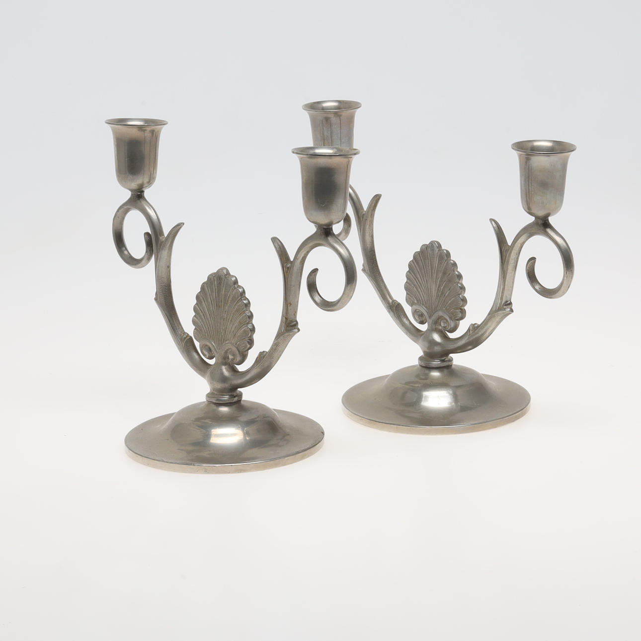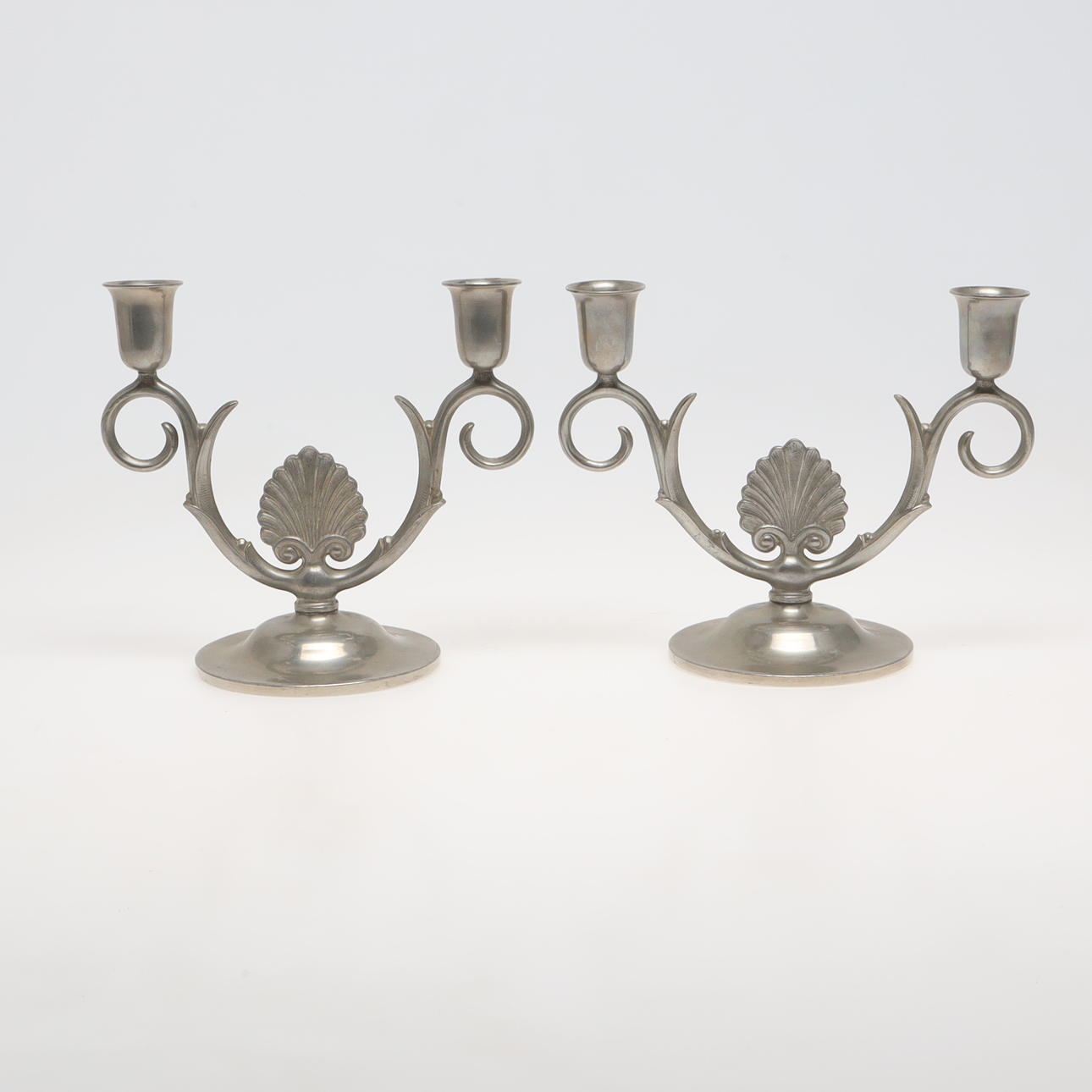 1 par kandelabrar, stämplade Fabriksaktiebolaget Kronsilver, Stockholm 1938. H ca 15 cm.