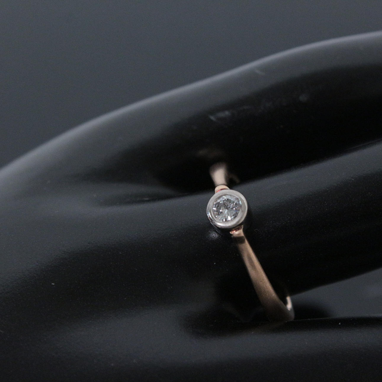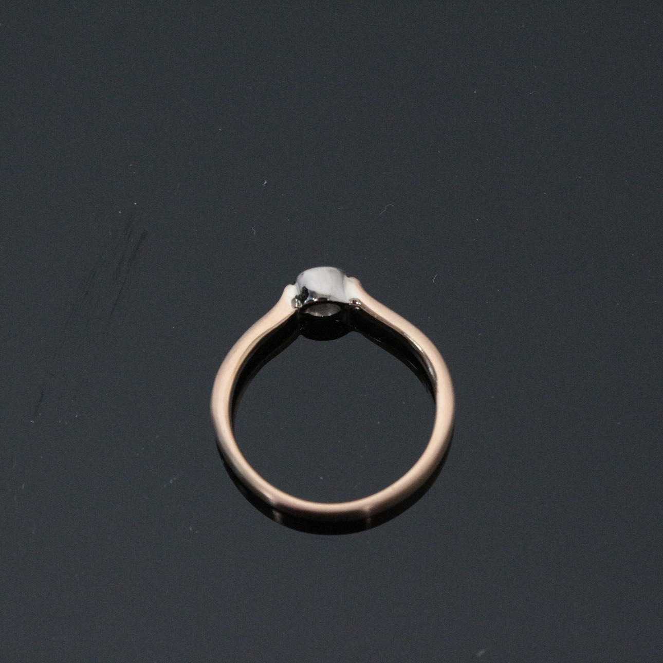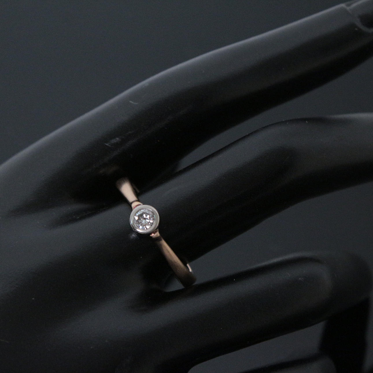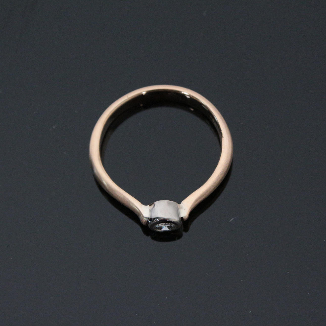 diamantring, 750 roséguld/vitguld, Diamant: 0,20 ct., P1, ringstorlek: 62 cm Vikt ca.: 5,3 gram.
