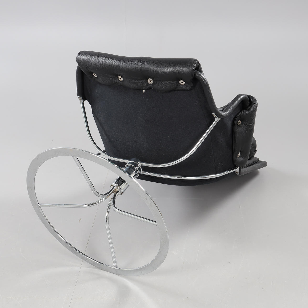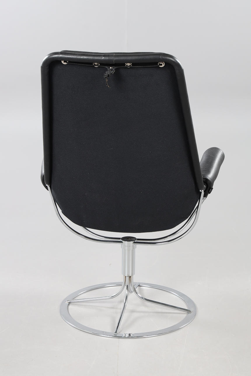 Svart skinn med nackkudde. Snurrfåtölj.