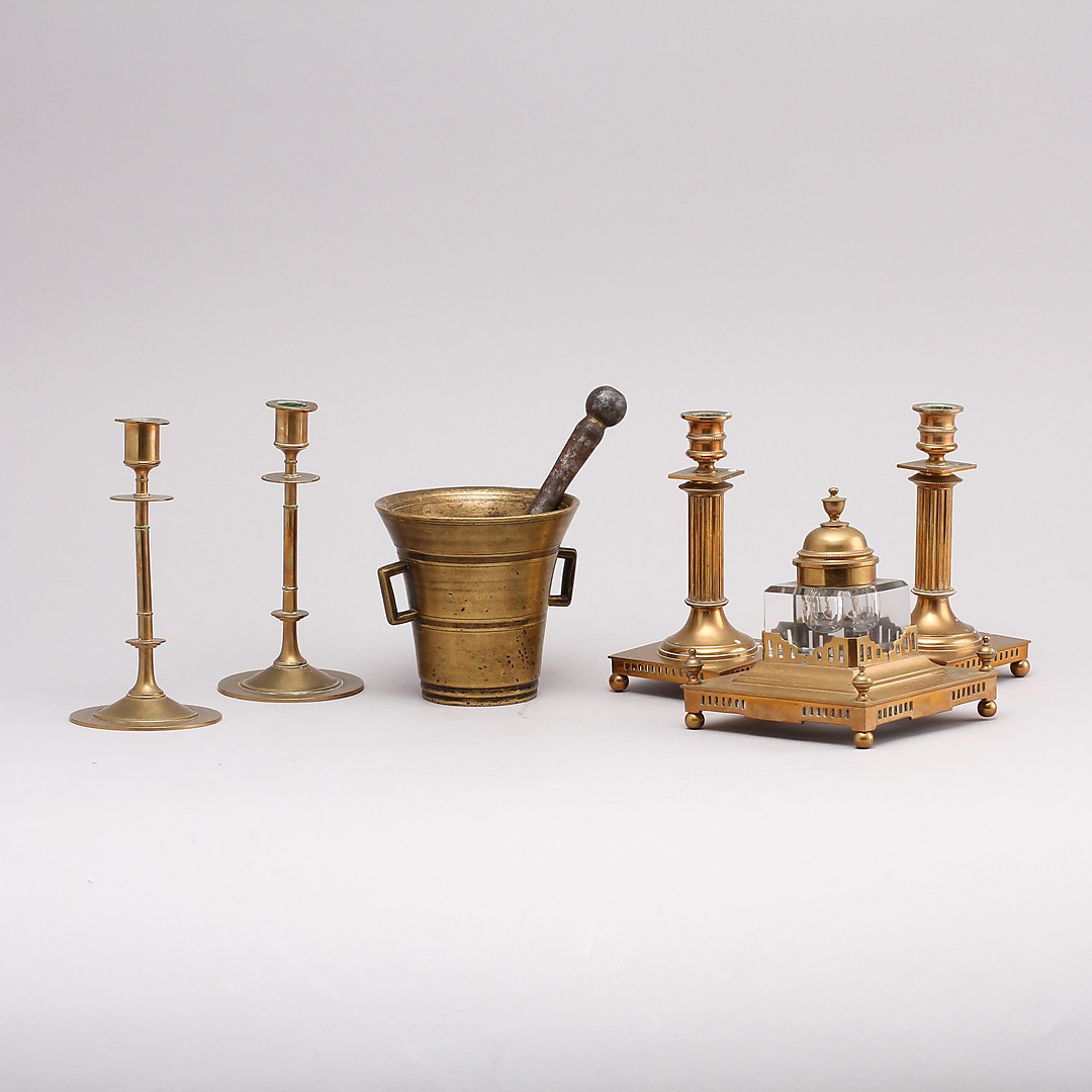 280139. MÄSSINGSFÖREMÅL, 6 delar.