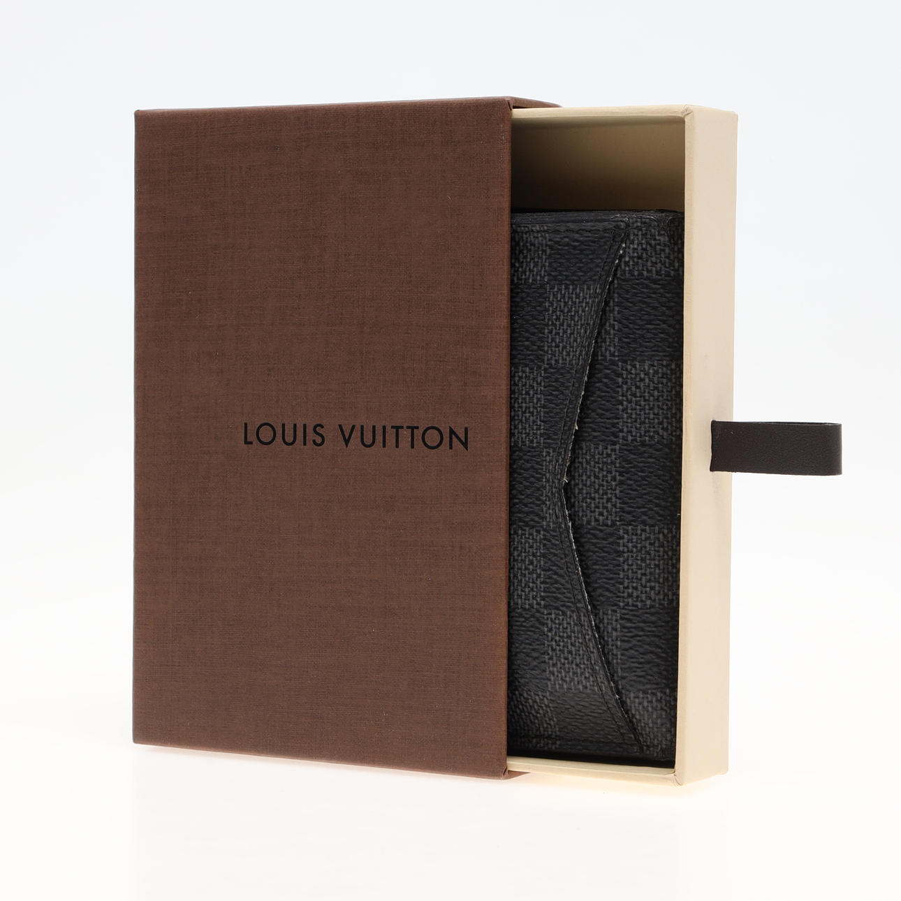 Korthållare i Damier-mönstrad grafitgrå kanvas. Datumkod MB2185, tillverkningsår 2015. Ca 8x11x1 cm. Ask medföljer.