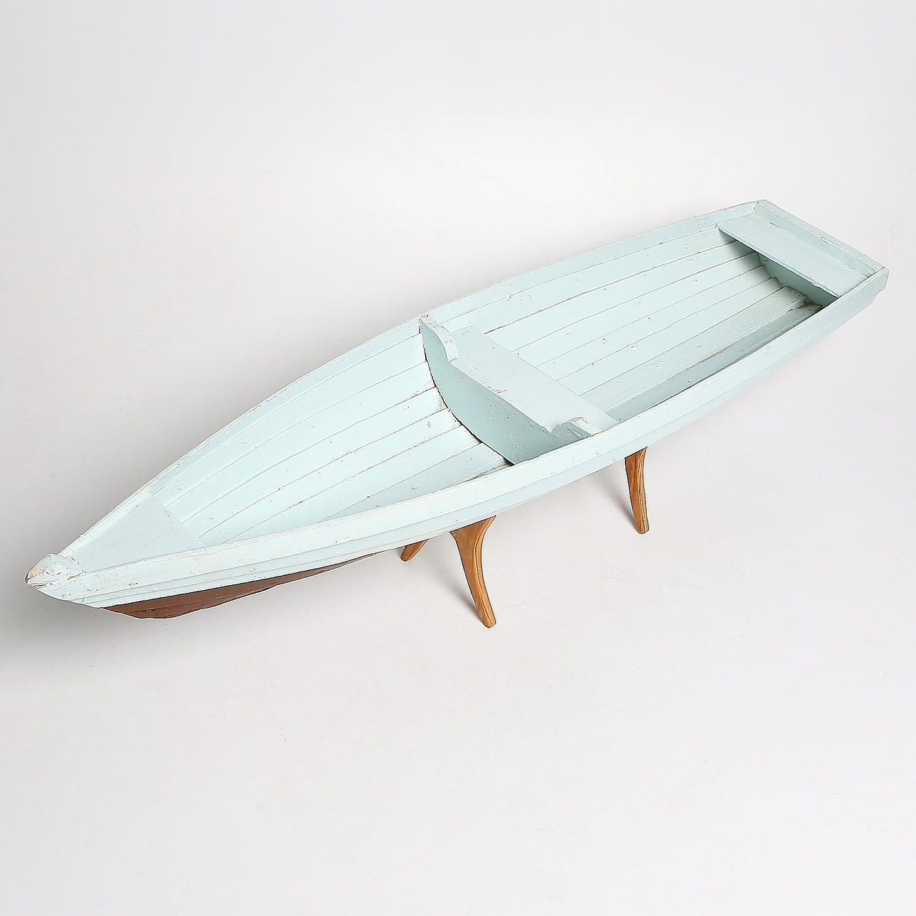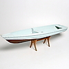 MODELLBÅT med STÄLL, trä, eka. 1900-talets mitt.