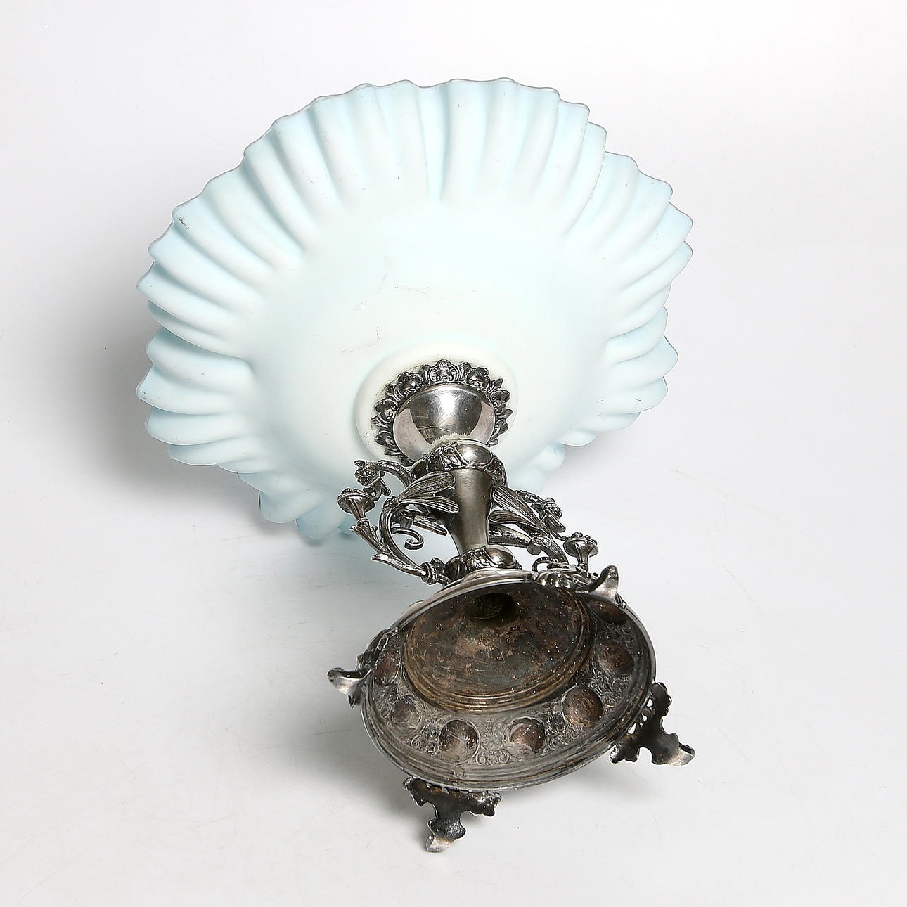 Fat av blåtonat opalinglas. Höjd 30, diameter 32 cm.