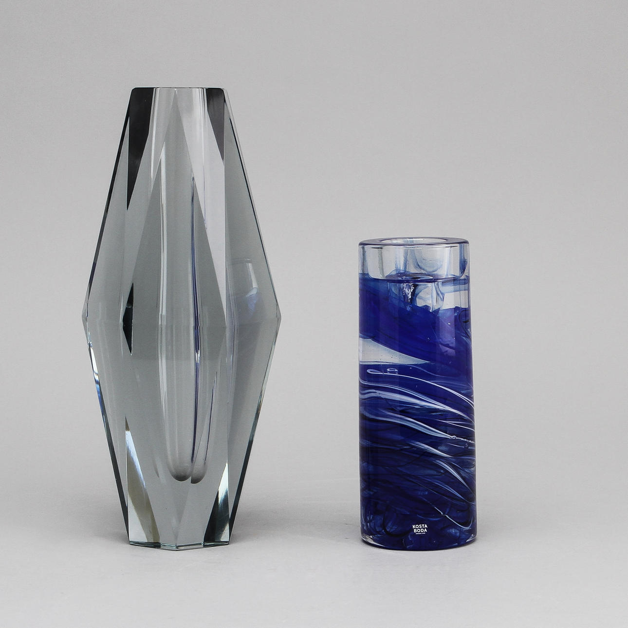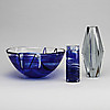 Vas Gerda Strömberg, höjd 29,5 cm, skål samt ljusstake Kosta Boda, höjd 15 - 19,5 cm.