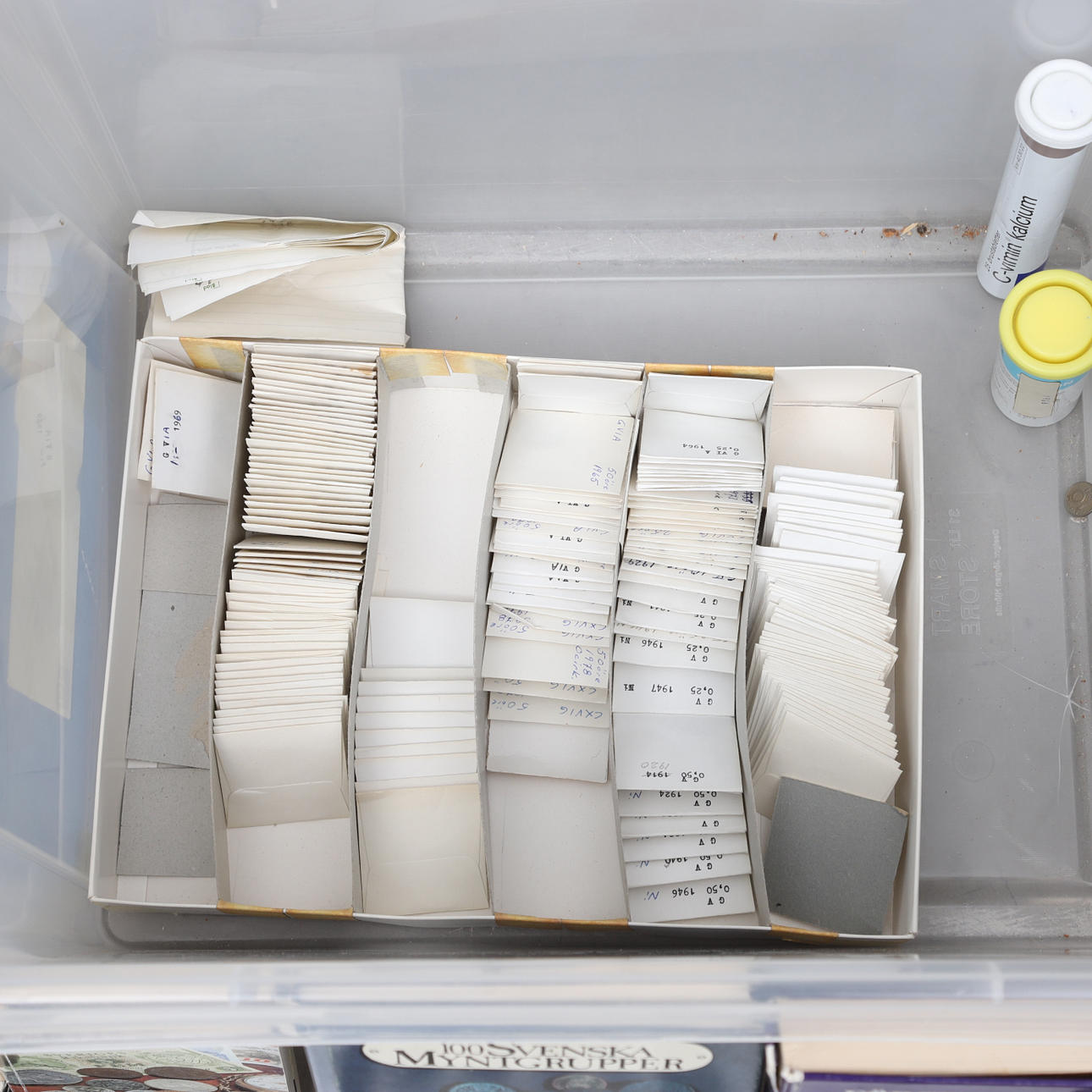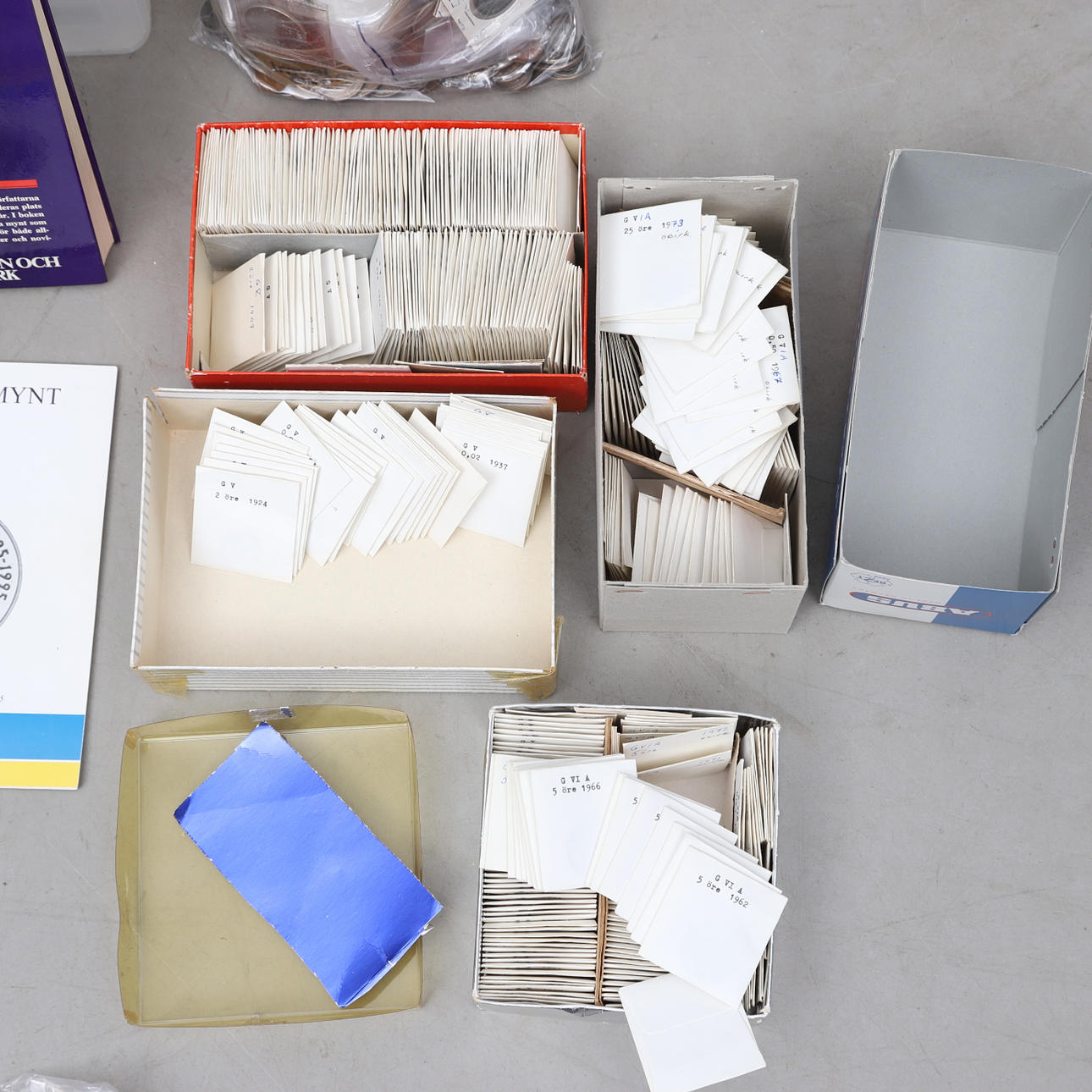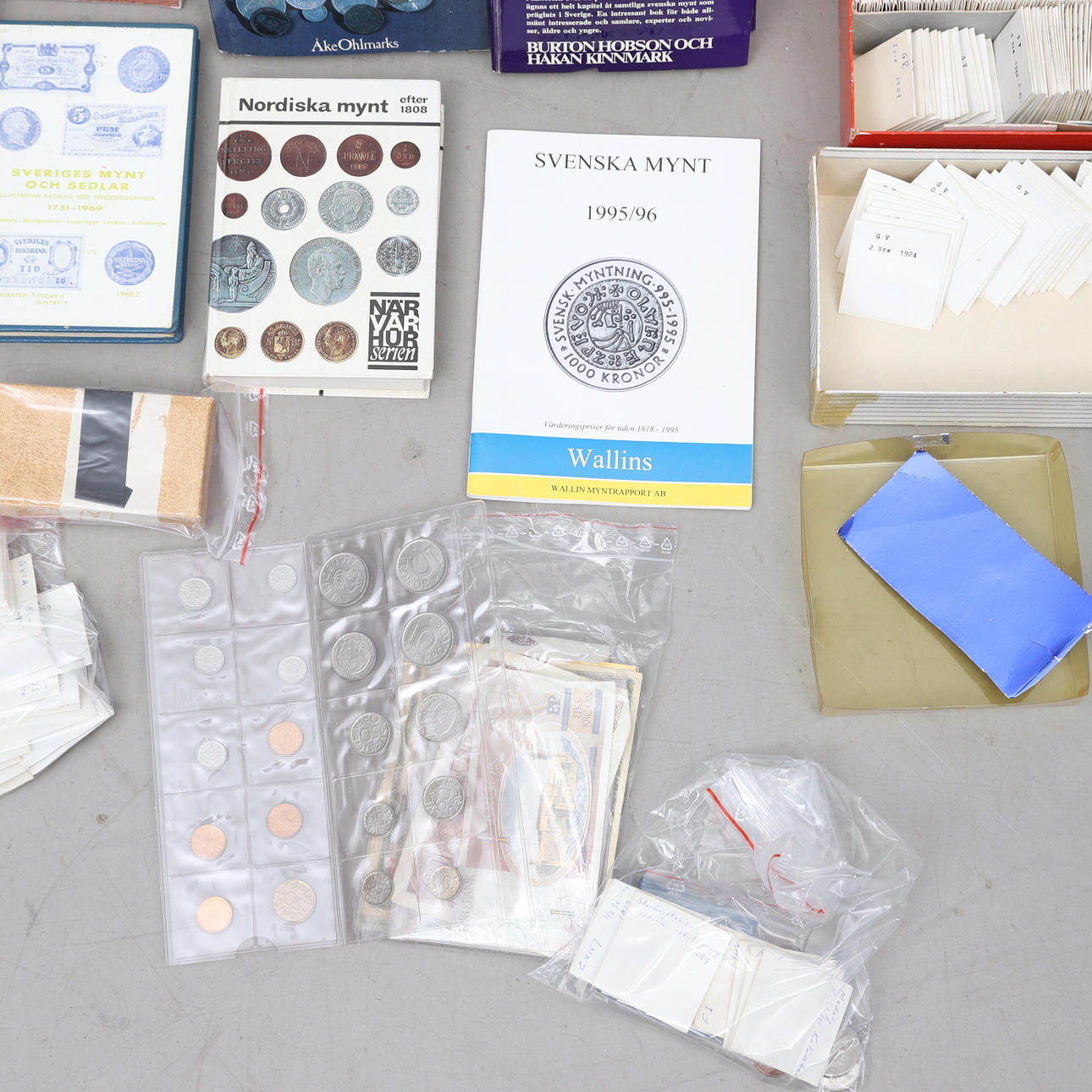 Stort parti mynt i olika valörer, utgivningsår och ursprungsländer.