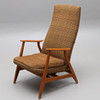 Med gungfunktion, stomme i teak, lös sittdyna. Höjd 104 cm, bredd ca 70 cm, sitthöjd ca 42 cm.