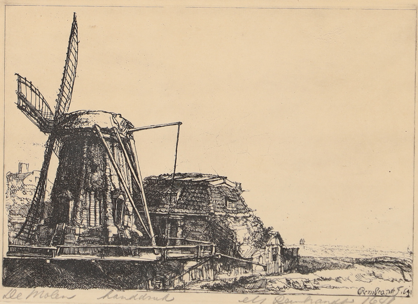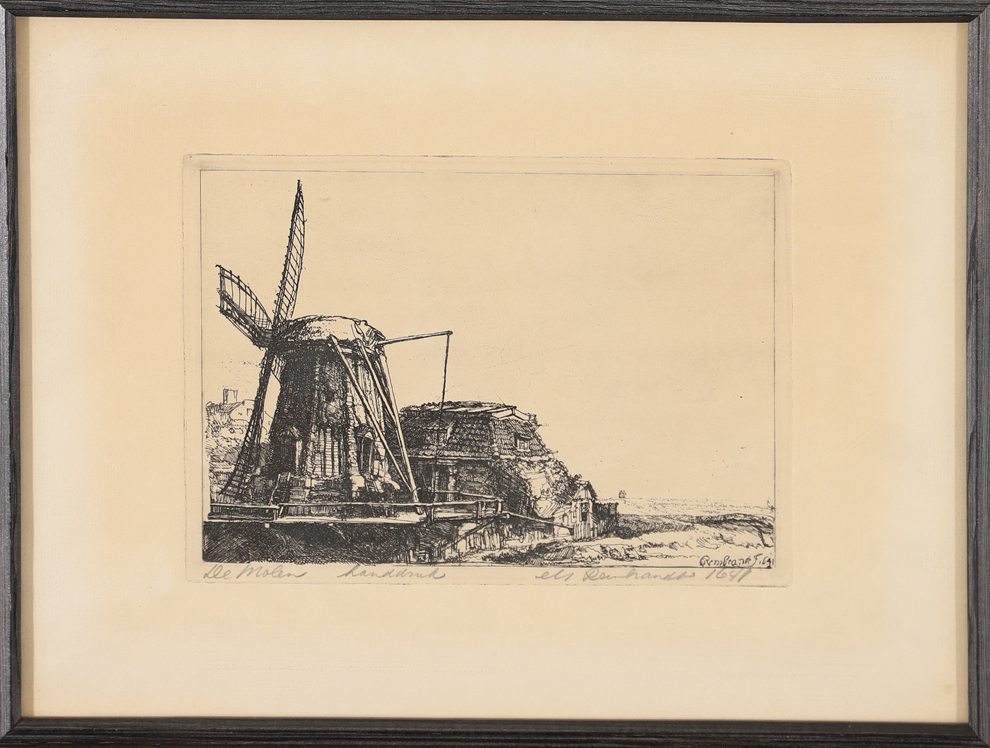 2808543. REMBRANDT. EFTER. Väderkvarn, etsning.