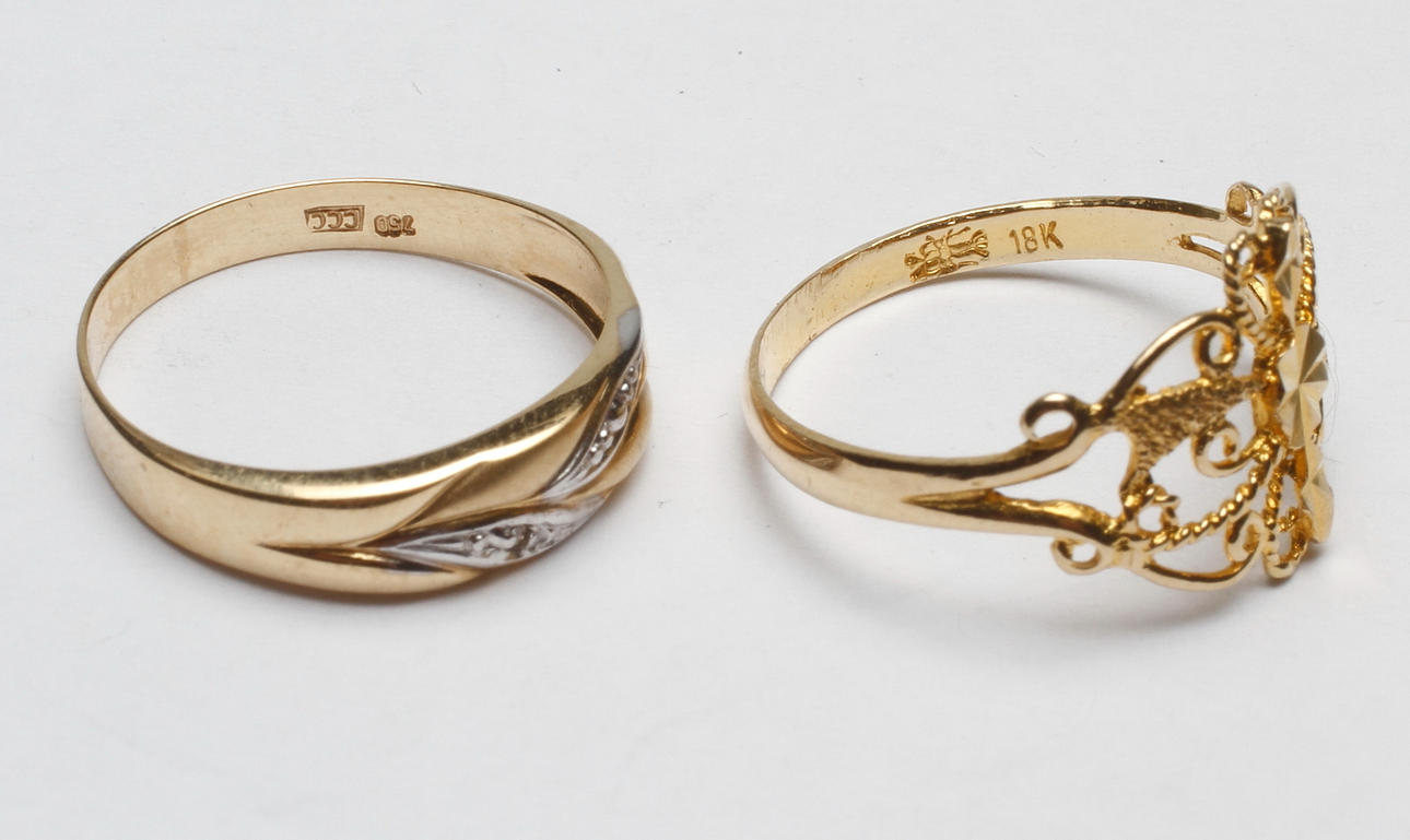 RINGAR, 2 st, 18k guld, vikt ca 3,3 gr.