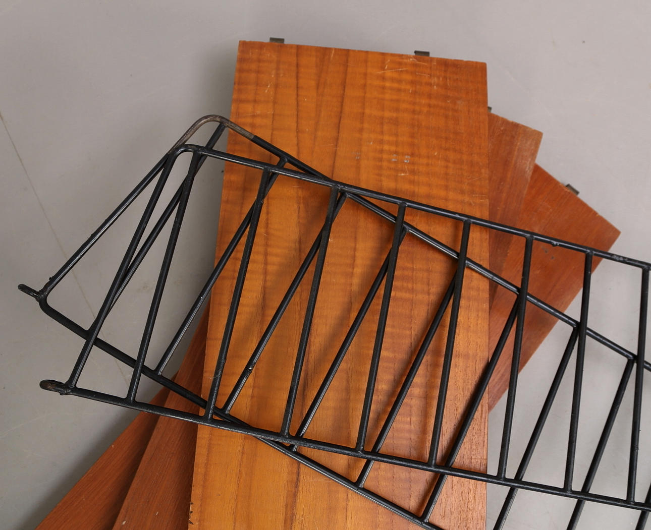 Gavlar höjd 76 cm, bredd 18 cm. Hyllplan längd 58, bredd 20 cm.