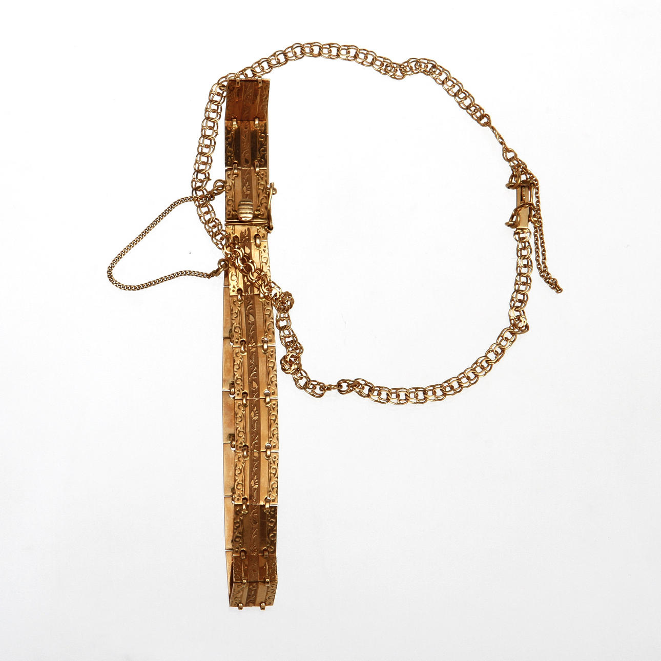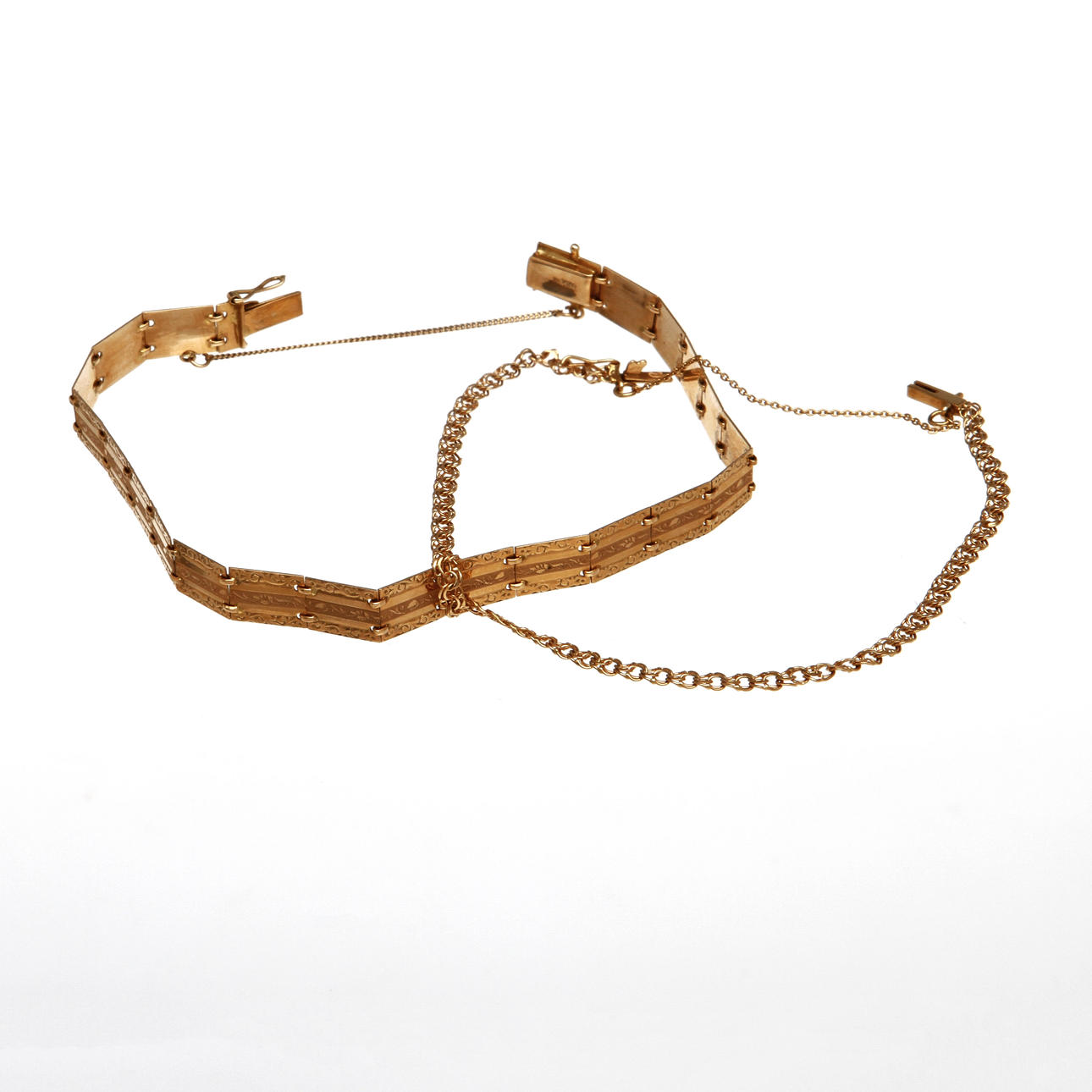 281150. ARMBAND, 2 st, 18k guld, vikt ca 7,6 gram.